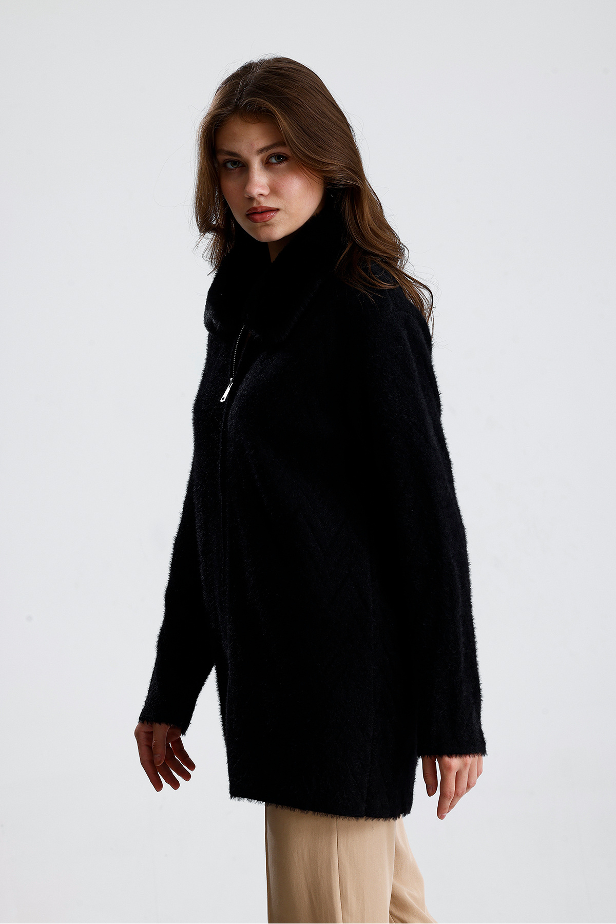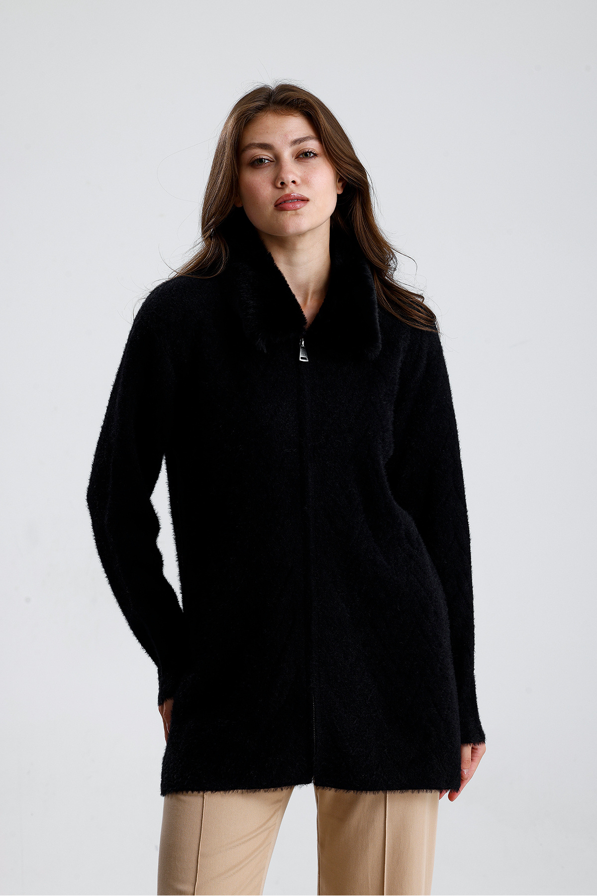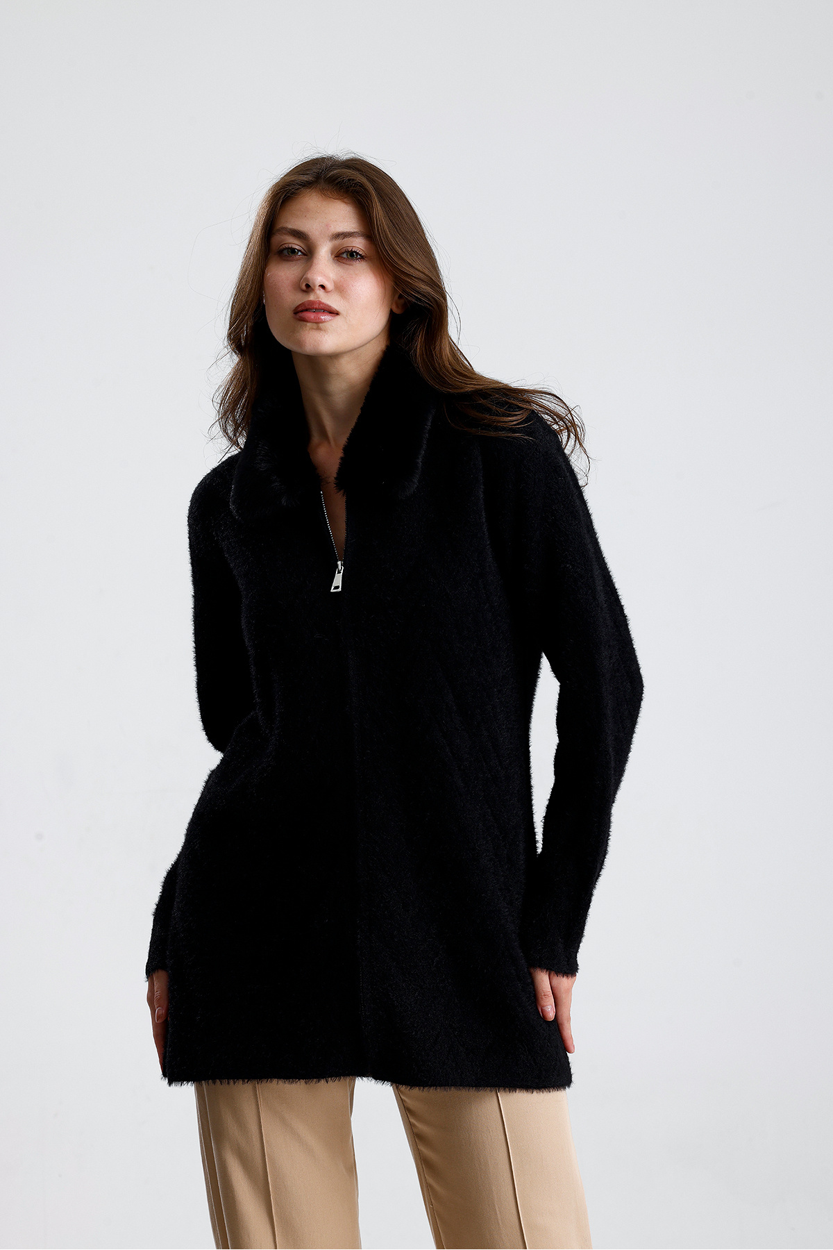 Kadın Peluş Yaka Fermuarlı Ceket Kadın Peluş Yaka Fermuarlı Ceket AYMİSS07316-2 M/L