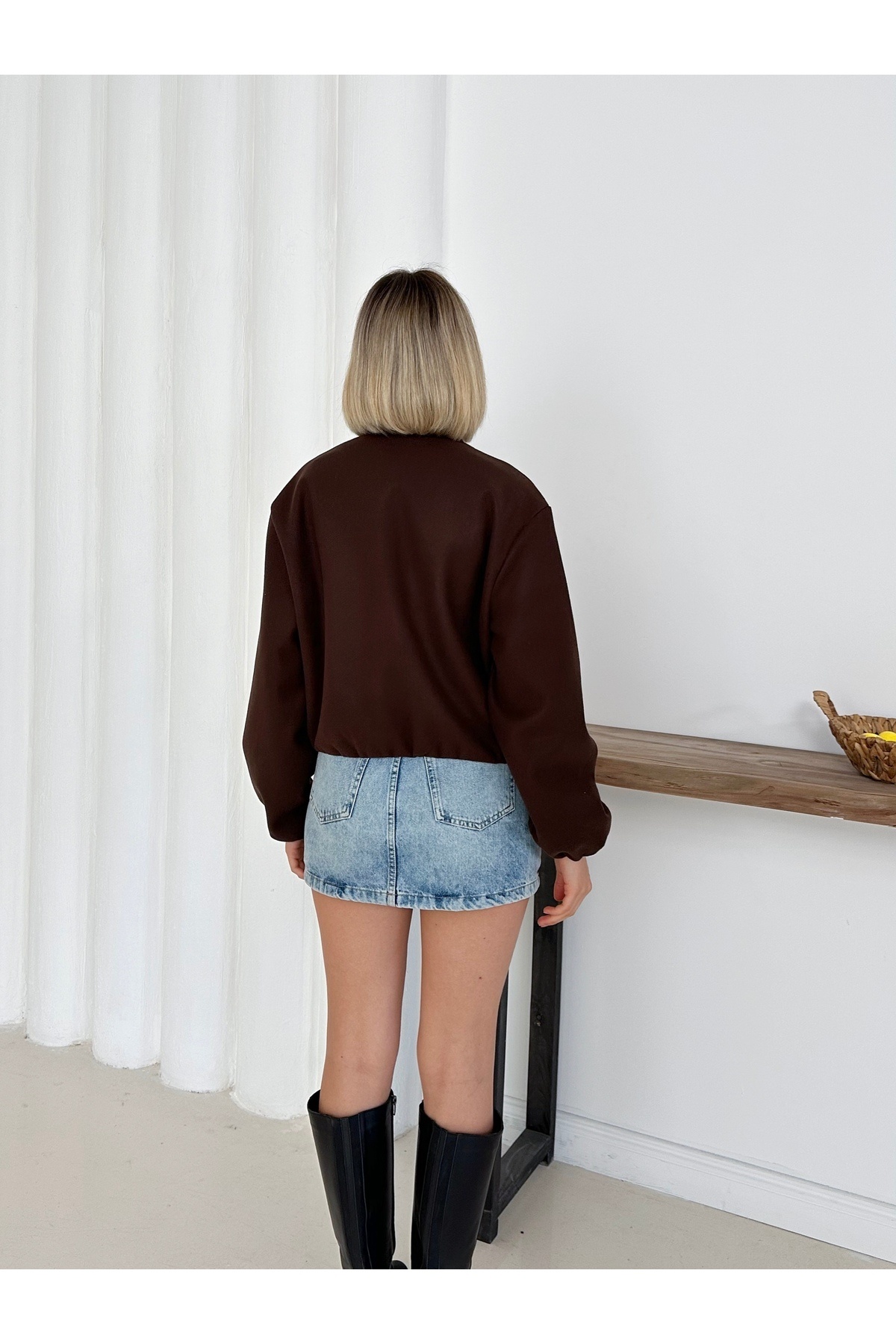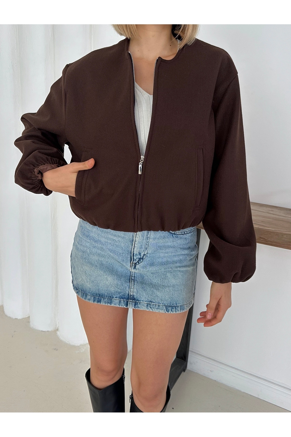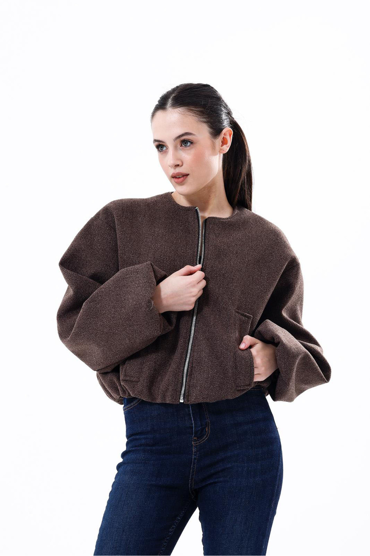 Kadın Kahve Fermuar Kapamalı Kaşe Bomber Ceket Kadın Kahve Fermuar Kapamalı Kaşe Bomber Ceket cst2044 L