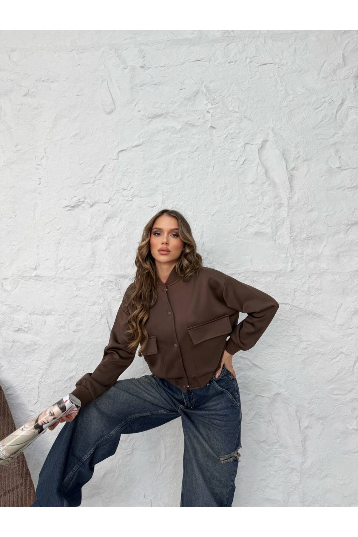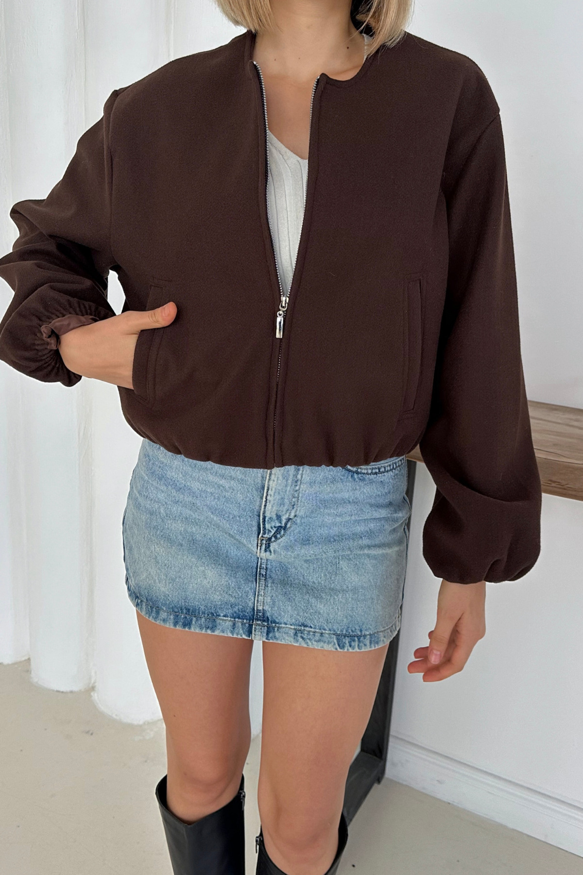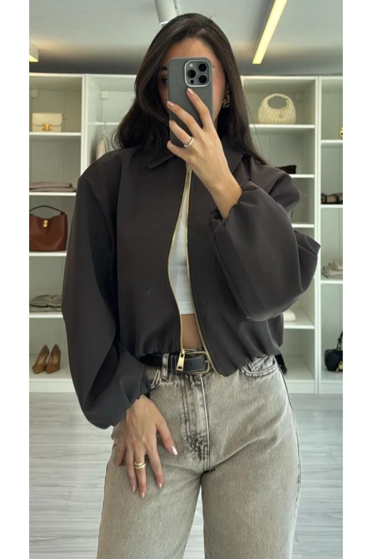 Kadın Kahve Fermuar Kapamalı Kaşe Bomber Ceket Kadın Kahve Fermuar Kapamalı Kaşe Bomber Ceket cst2044 L