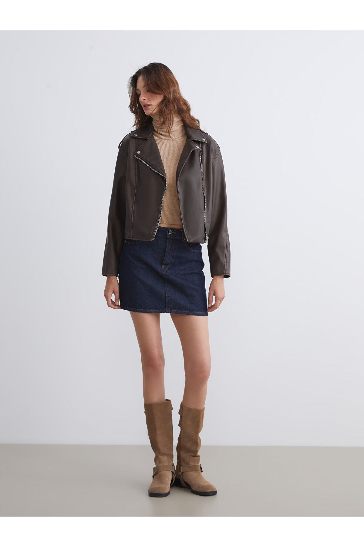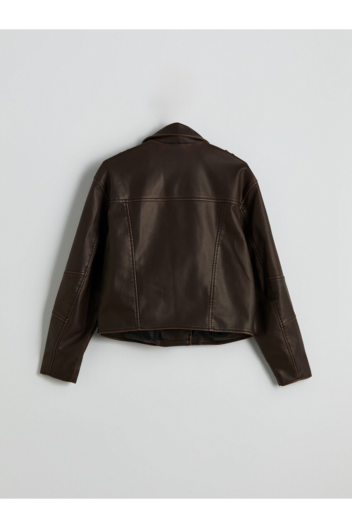 LCW Vision Kahverengi Biker Yaka Kadın Deri Görünümlü Ceket W56991Z8 LCW Vision Kahverengi Biker Yaka Kadın Deri Görünümlü Ceket W56991Z8 40