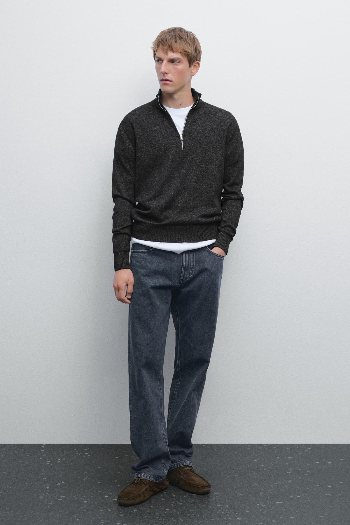 Fermuarlı dik yaka triko kazak Fermuarlı dik yaka triko kazak 00110779201013222 2XL