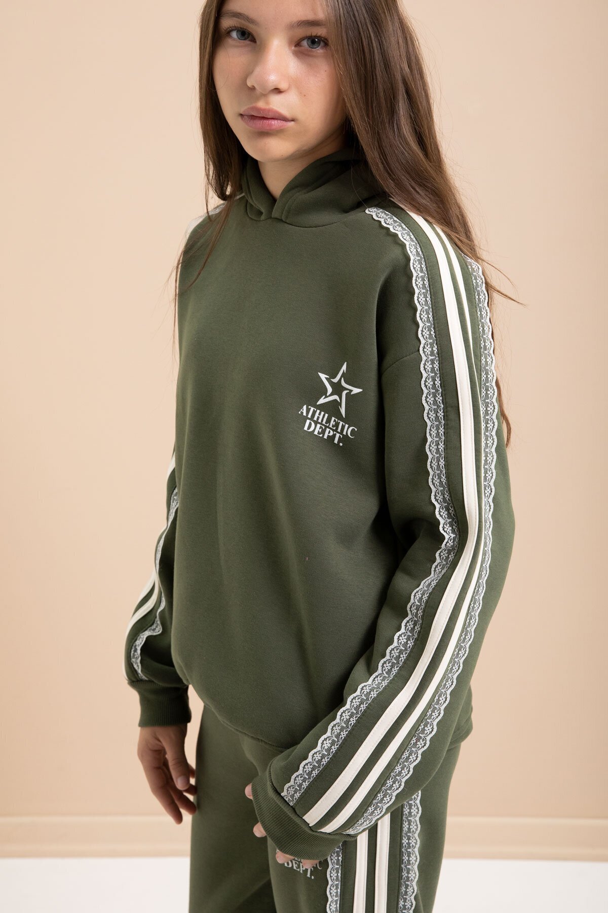 Haki 3 İplik Şardonlu Şeritli Dantel Detaylı Kız Çocuk Kapüşonlu Eşofman Takımı 22722 Haki 3 İplik Şardonlu Şeritli Dantel Detaylı Kız Çocuk Kapüşonlu Eşofman Takımı 22722 GRPCM00022719 13-14 Yaş