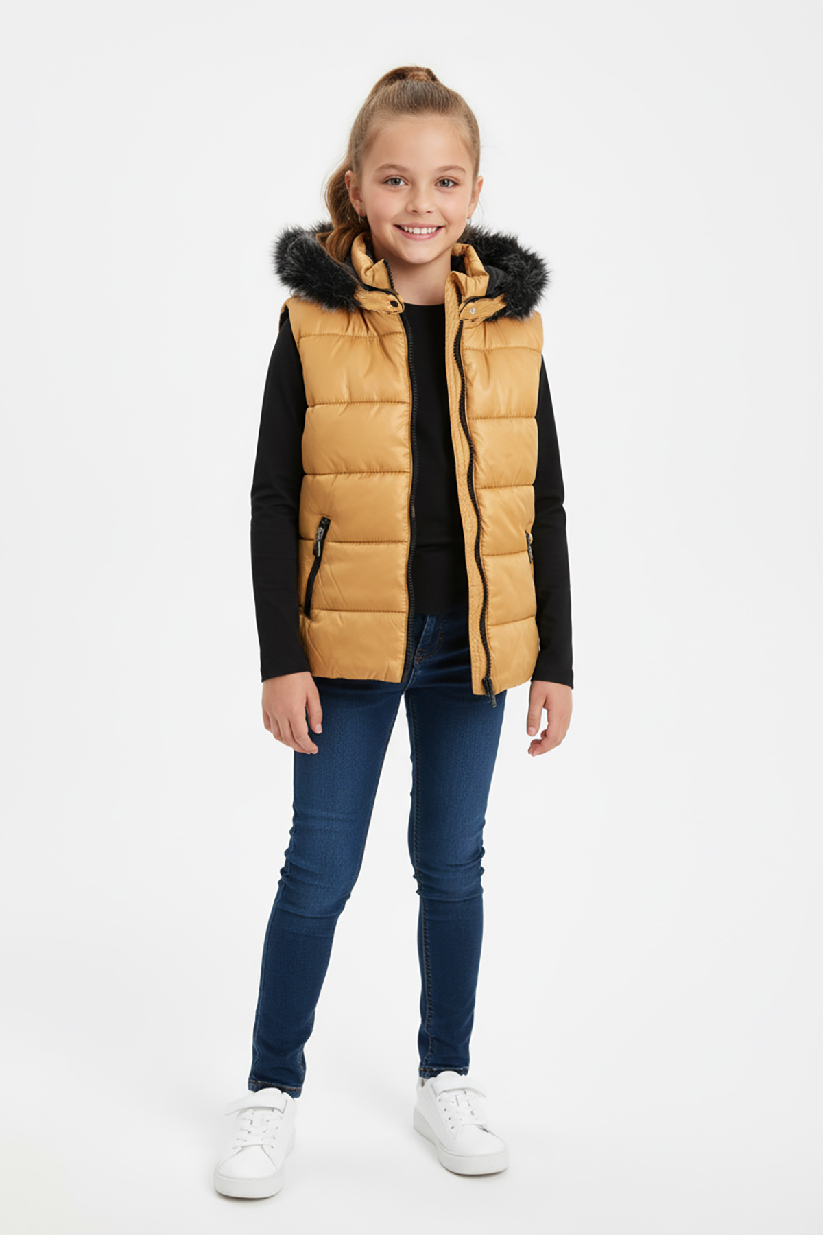 içi elyaf dolgulu kürk kapşonlu kız yelek içi elyaf dolgulu kürk kapşonlu kız yelek AVM3072 8-9 Yaş