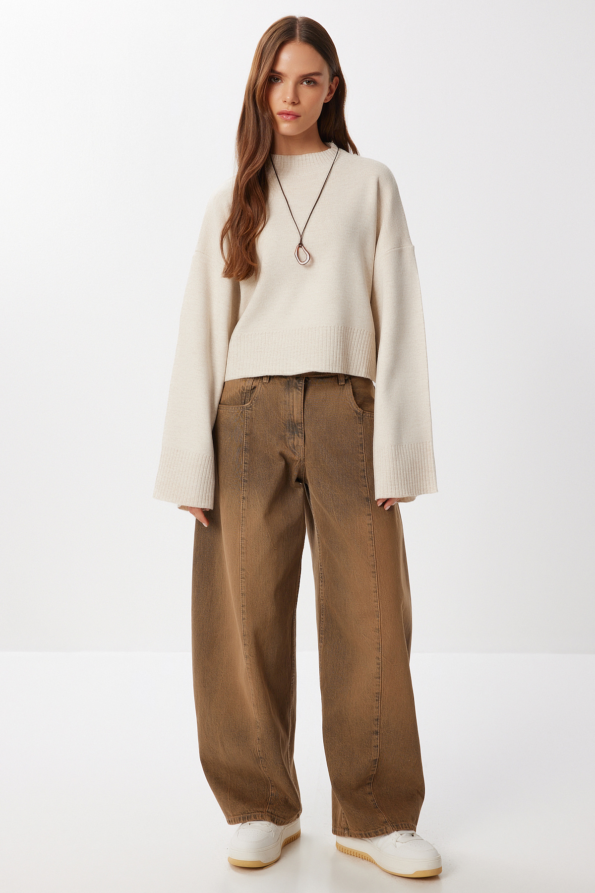 Oversize Triko Kazak LFG0157 BEJ Oversize Triko Kazak LFG0157 BEJ تک سایز