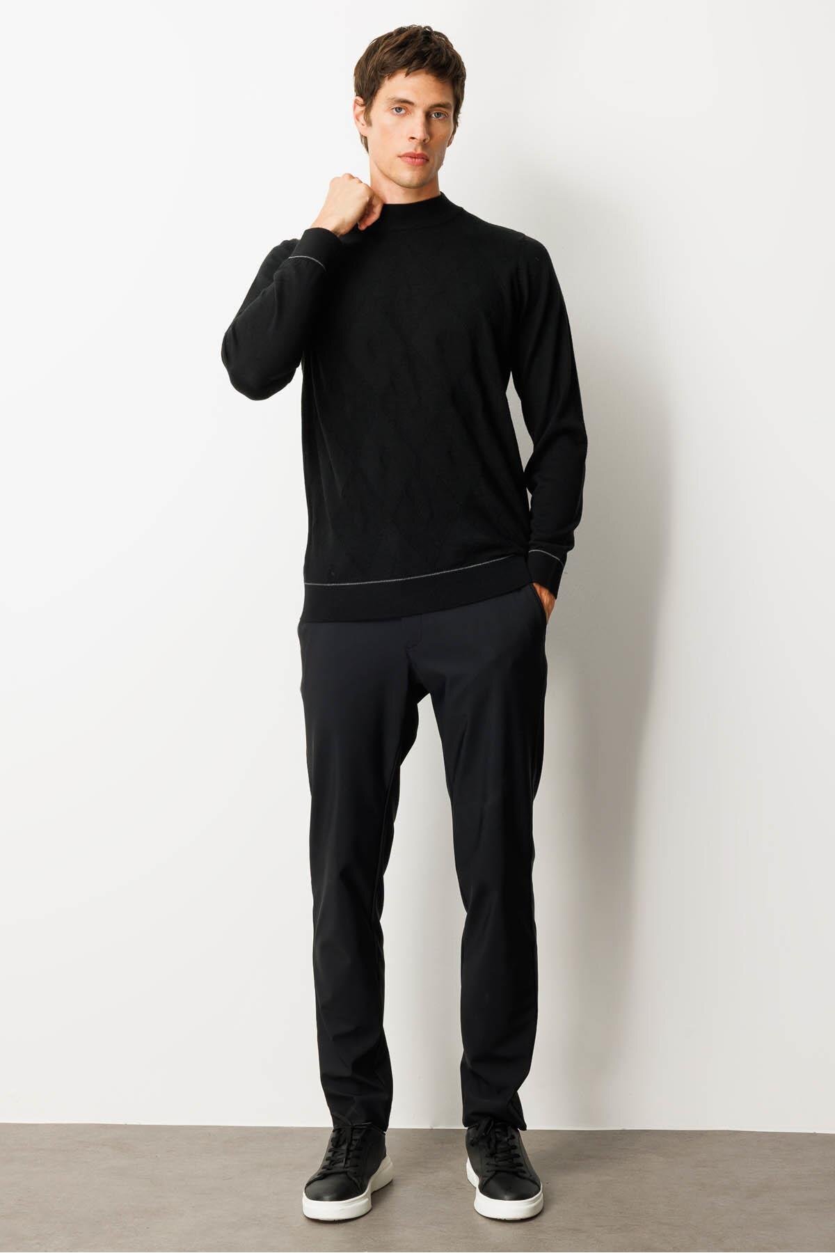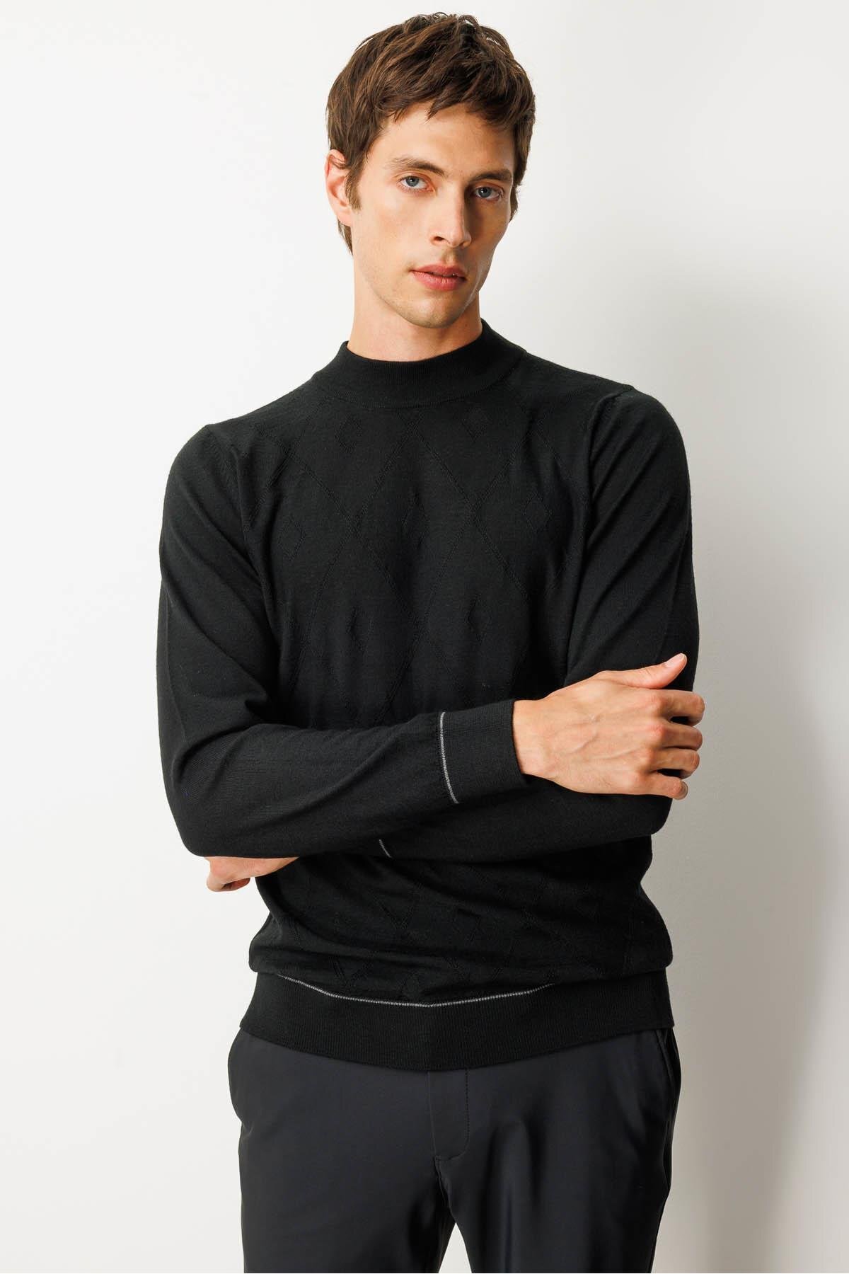 Erkek Yarım Balıkçı Yaka Çizgili Baklavalı Yün Kazak Siyah Erkek Yarım Balıkçı Yaka Çizgili Baklavalı Yün Kazak Siyah 25605 3XL