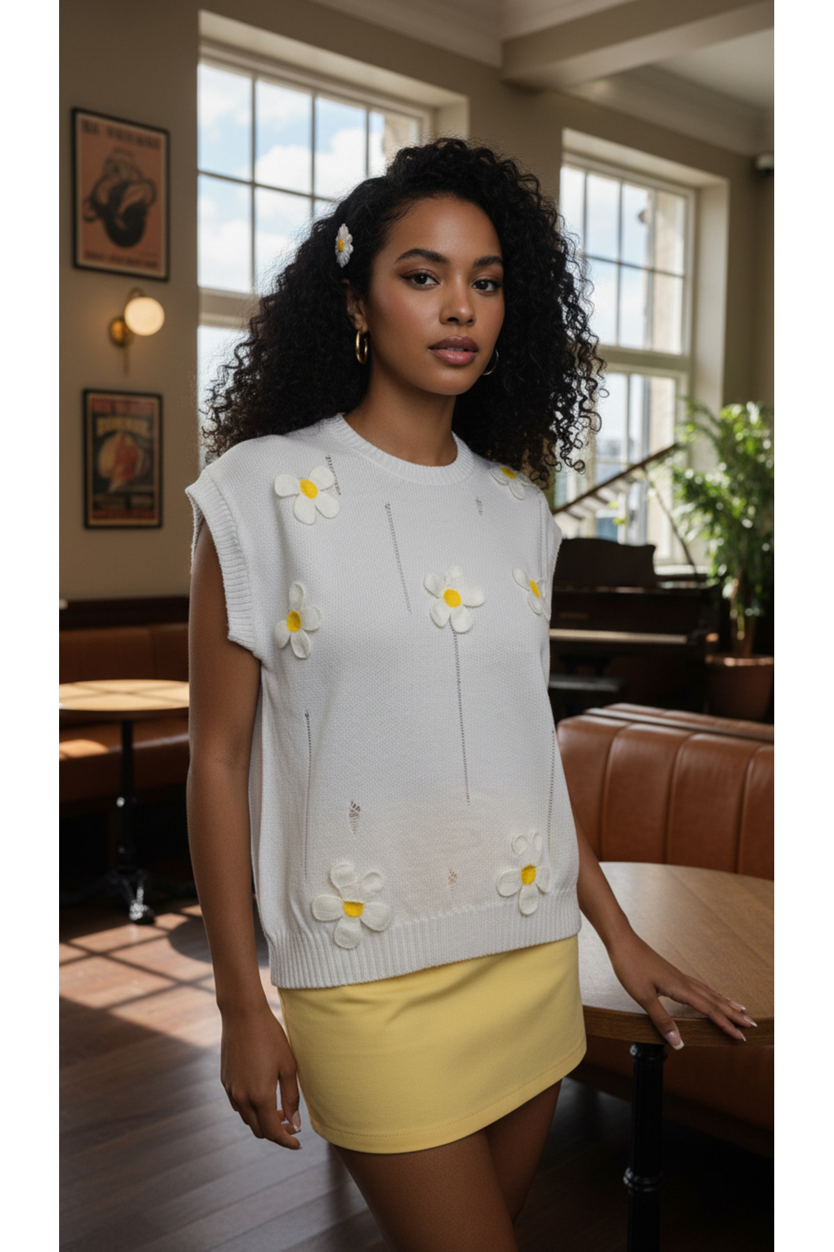 Papatya Detaylı Triko Oversize Süveter Papatya Detaylı Triko Oversize Süveter nlzsuvetercıcek Standart