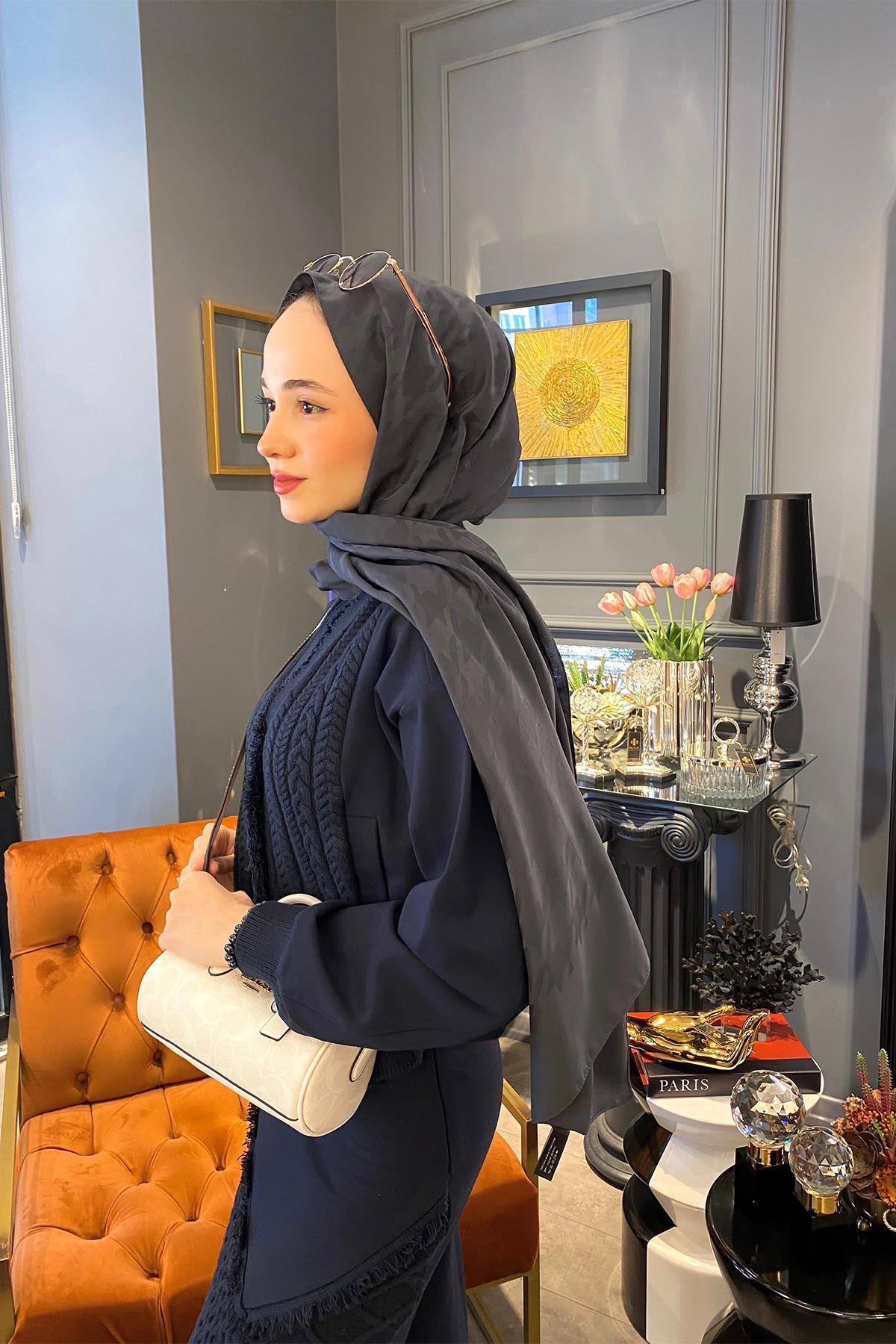 Monogram Desen Liora Pamuk Şal Siyah Monogram Desen Liora Pamuk Şal Siyah e32-414-mono تک سایز