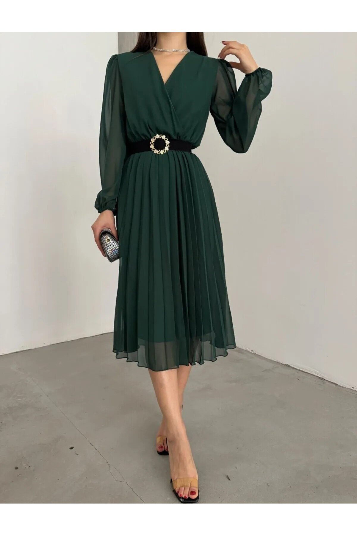 Yeni Sezon Kadın Kruvaze Yaka Astarlı Kemerli Tül Midi Şifon Elbise Yeni Sezon Kadın Kruvaze Yaka Astarlı Kemerli Tül Midi Şifon Elbise SNN160820 3XL