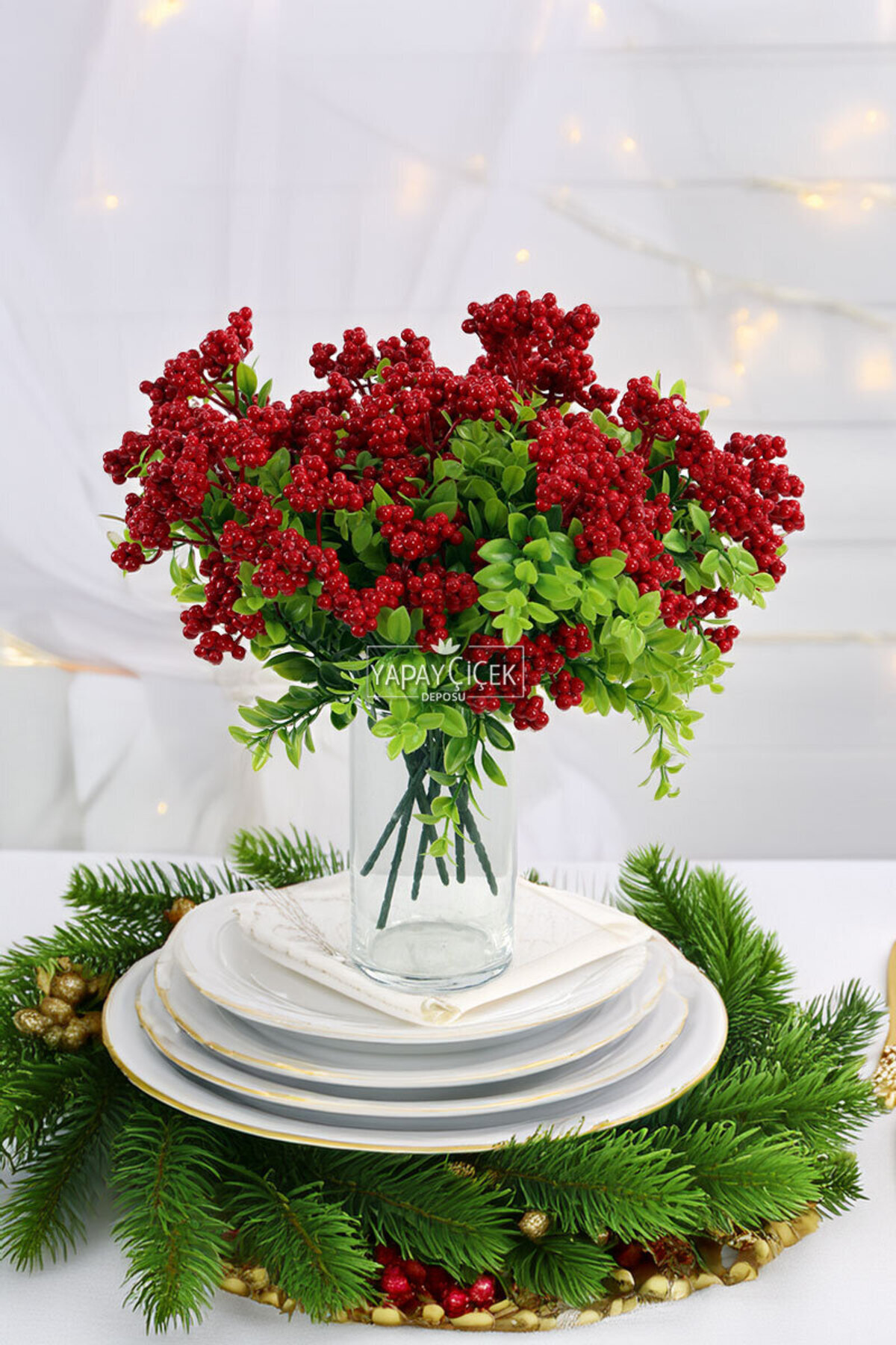 Yapay Çiçek 5 Dallı Yoğun Yapraklı Ruscus Kokina Demeti 33 cm 2026 Yılbaşı Özel Yapay Çiçek 5 Dallı Yoğun Yapraklı Ruscus Kokina Demeti 33 cm 2026 Yılbaşı Özel YPCCK-F-767 تک سایز