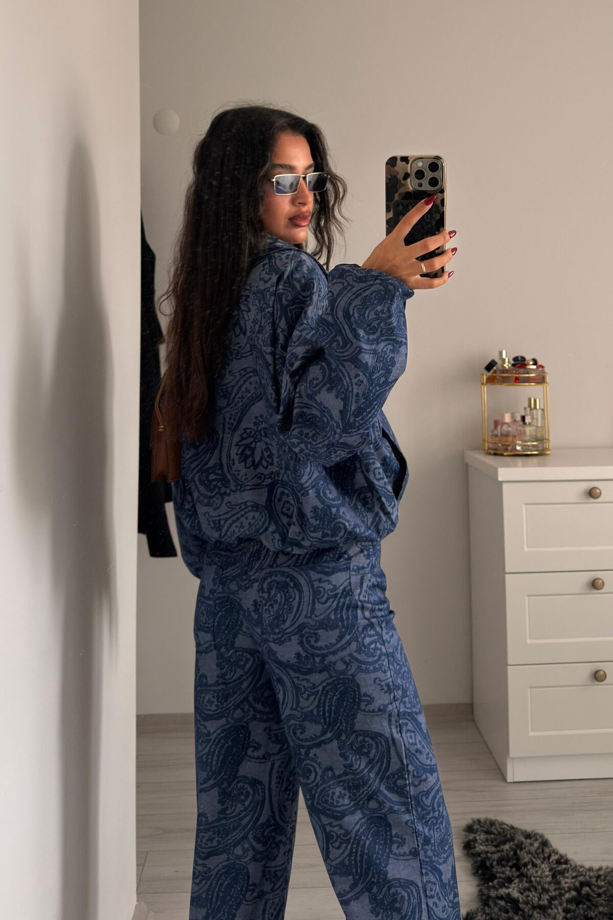SHILSEE KADIN ŞAL DESEN CEKET PANTOLON TAKIM LACİVERT SHILSEE KADIN ŞAL DESEN CEKET PANTOLON TAKIM LACİVERT 5055 L