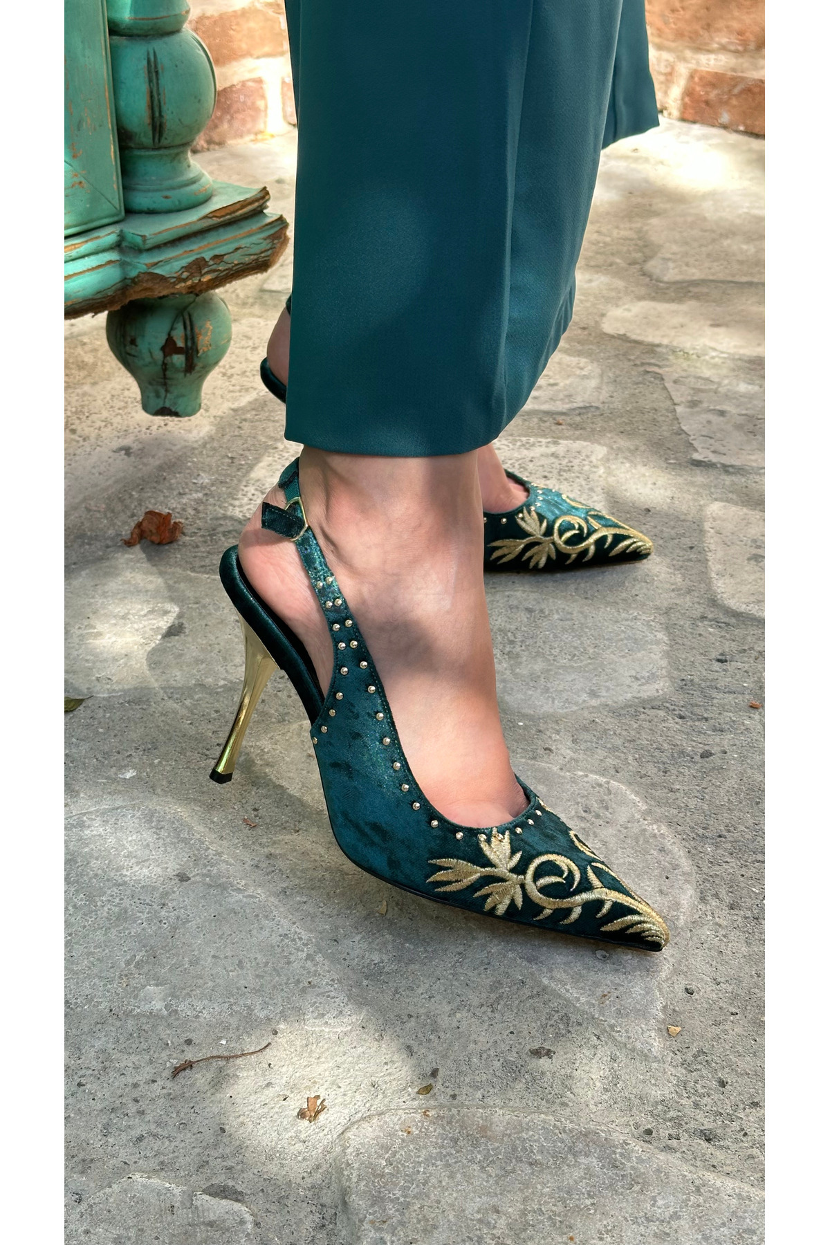 Firuze Nakış Detaylı Topuklu Ayakkabı Firuze Nakış Detaylı Topuklu Ayakkabı 00222 40