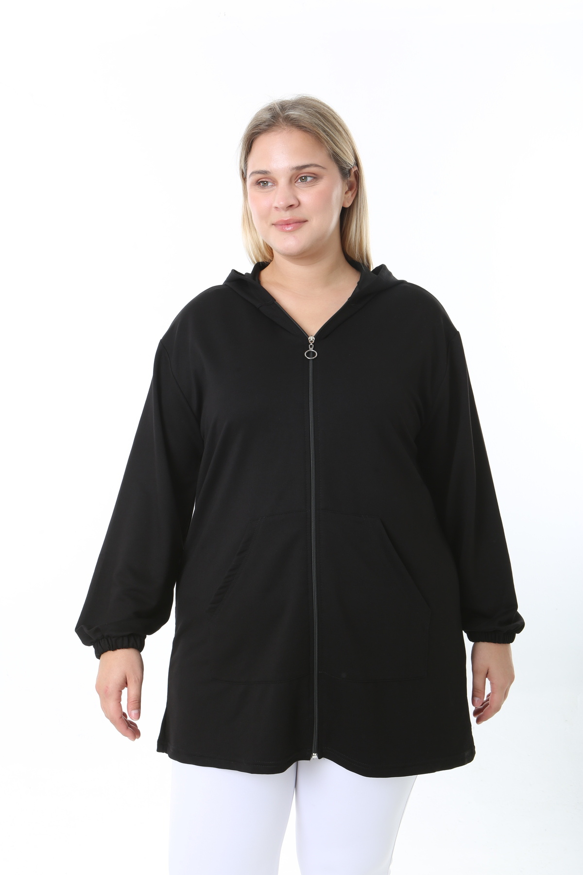 kadın likralı siyah kapüşonlu büyük beden hırka kadın likralı siyah kapüşonlu büyük beden hırka H10413 54-56