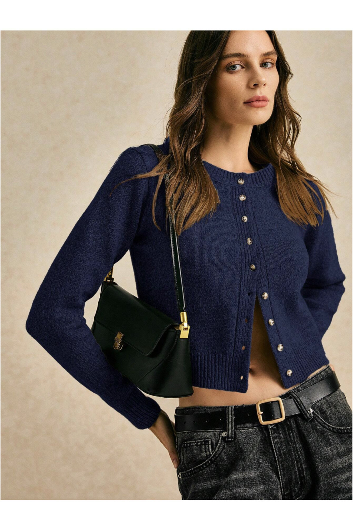 Kadın Düğmeli Basic Triko Hırka Kadın Düğmeli Basic Triko Hırka smn7004 Standart