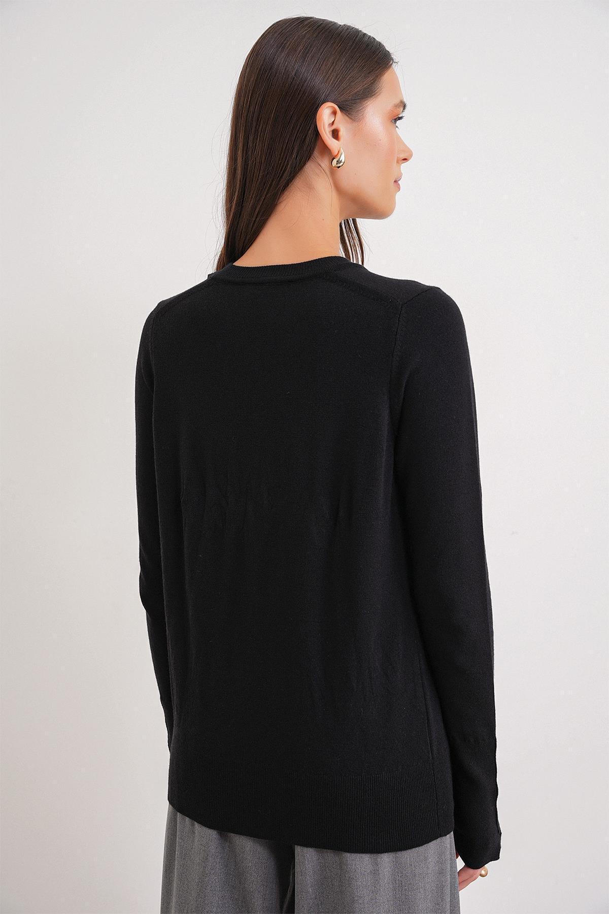 6736 Kadın Bisiklet Yaka Kolu Droplu Triko Kazak Siyah 6736 Kadın Bisiklet Yaka Kolu Droplu Triko Kazak Siyah K24KZK6736 L
