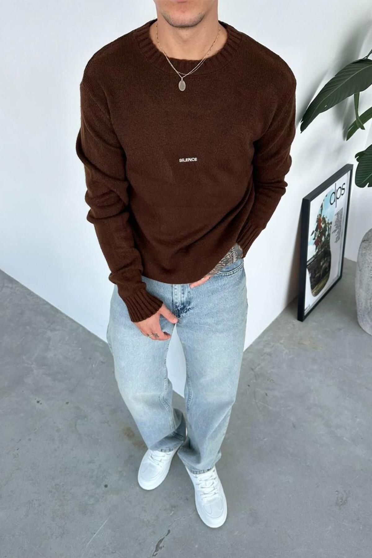 Bordo Sılence Nakış Soft Relaxed Kazak Bordo Sılence Nakış Soft Relaxed Kazak HF0038-MH-K XL