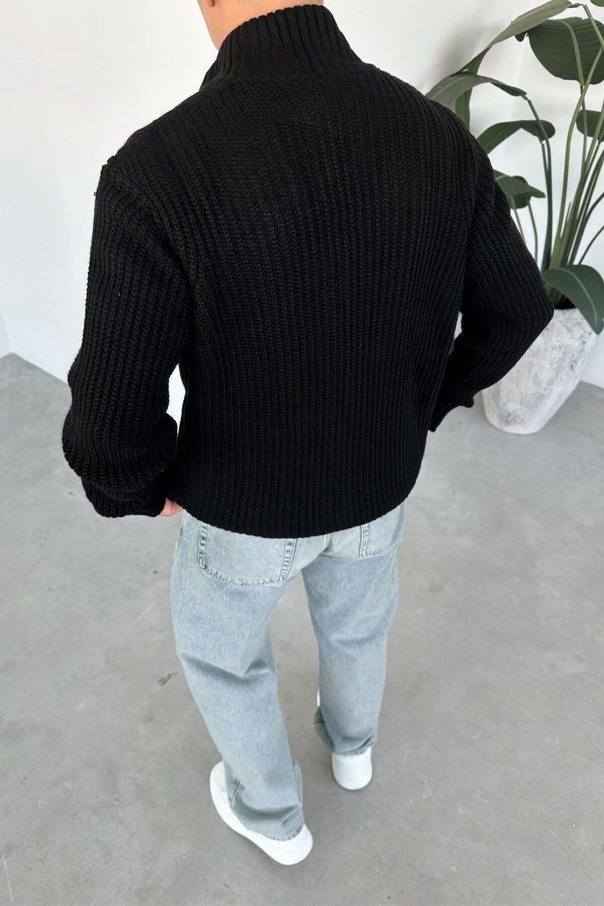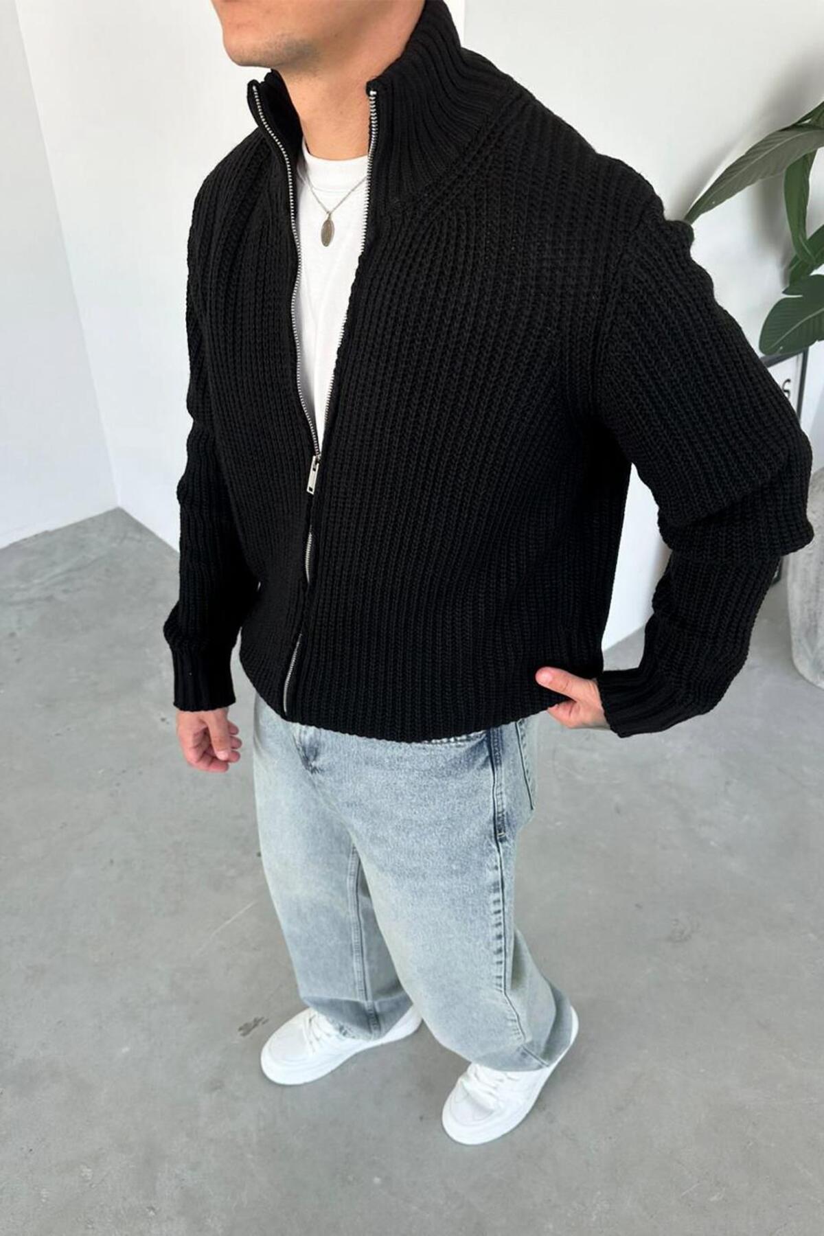 Siyah Tam Fermuarlı Relaxed Örgü Kazak Siyah Tam Fermuarlı Relaxed Örgü Kazak HF0050-MH-K XL