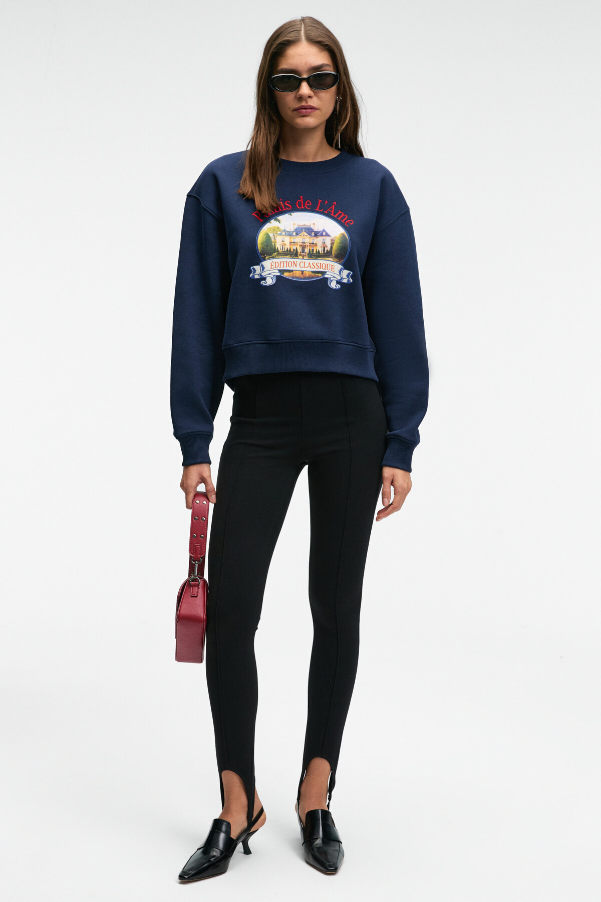 TALMERA Kadın Önü Baskılı Yuvarlak Yaka Lacivert Sweatshirt TALMERA Kadın Önü Baskılı Yuvarlak Yaka Lacivert Sweatshirt TALMERA01012025 XL
