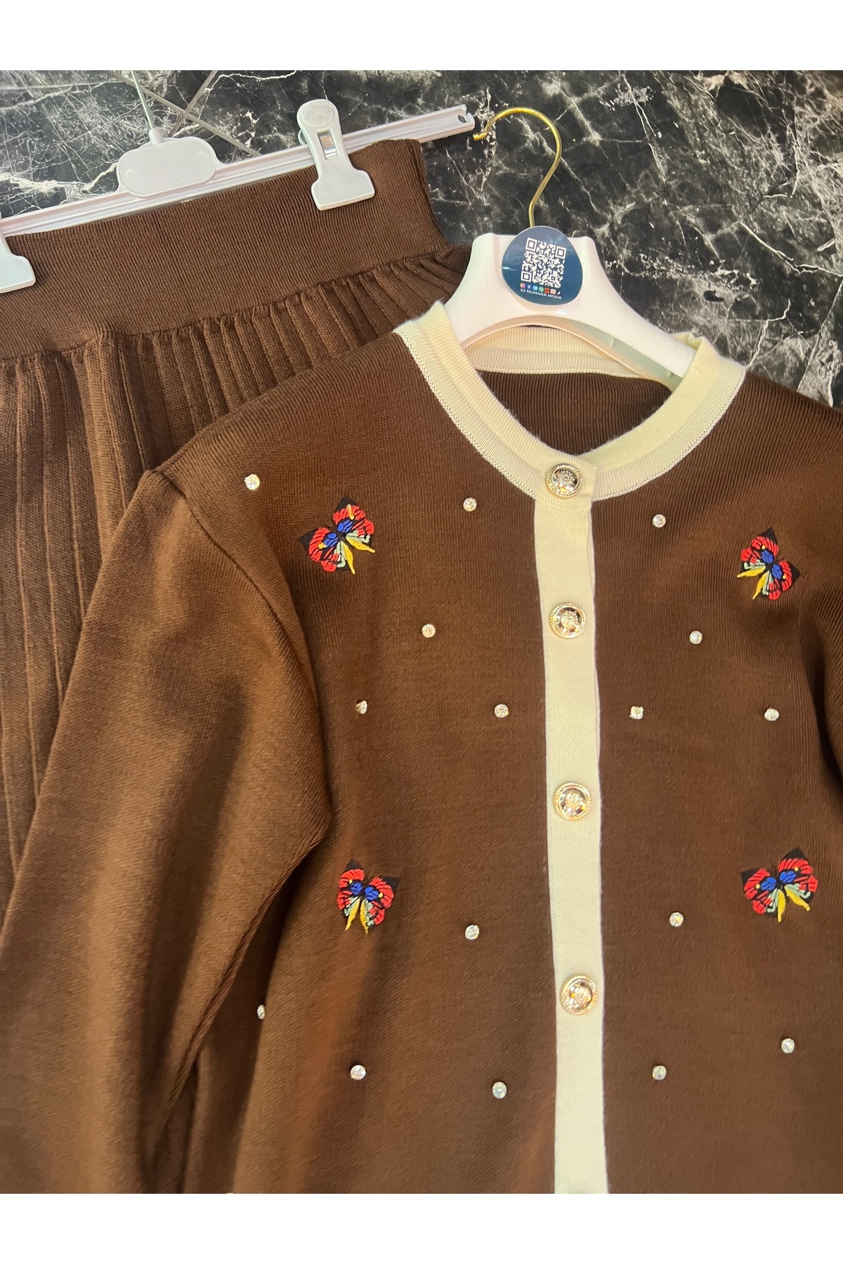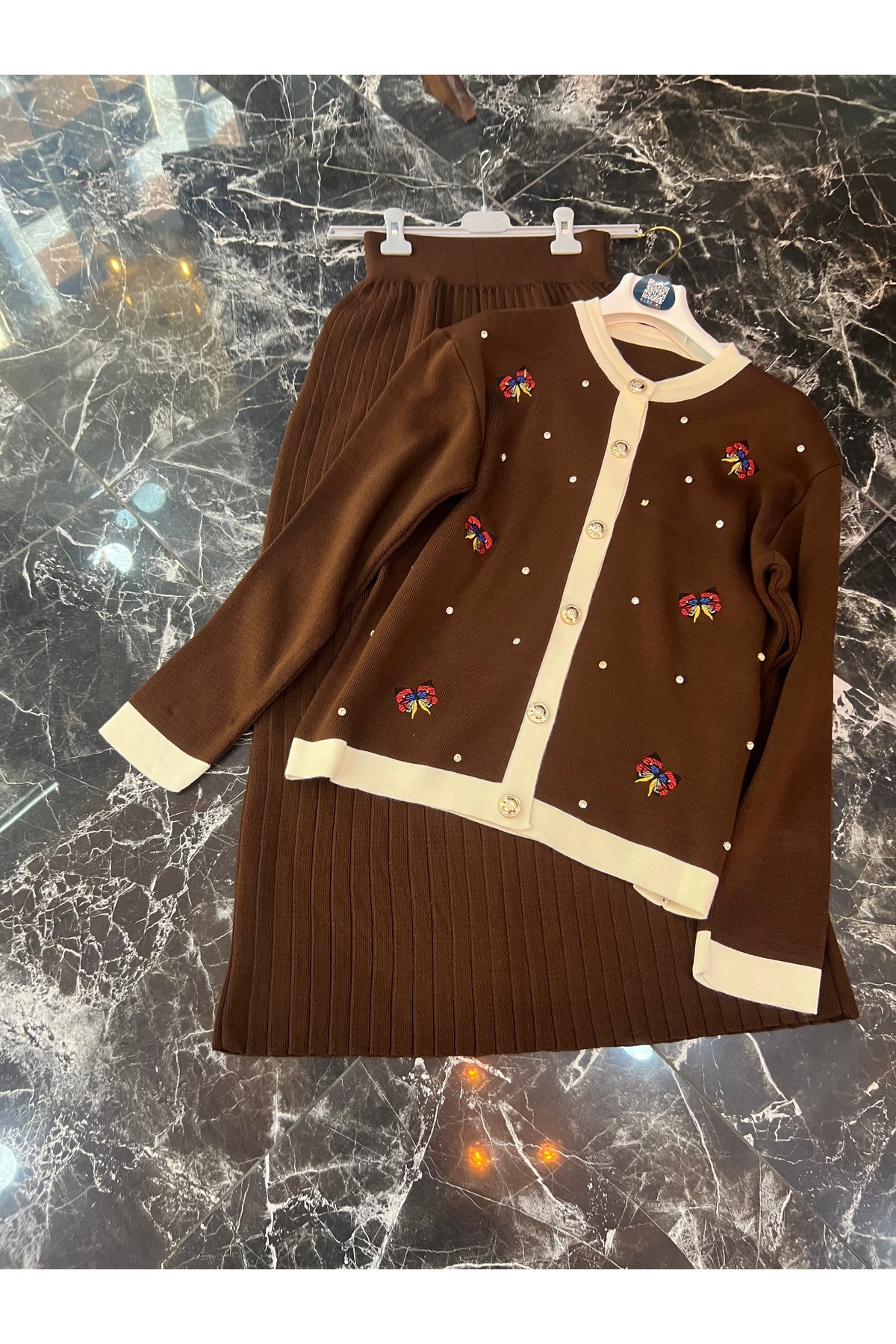Kadın Tesettür Alt Üst Takım kelebek Nakışlı Hırka Etekli Triko Takım Kahverengi Kadın Tesettür Alt Üst Takım kelebek Nakışlı Hırka Etekli Triko Takım Kahverengi 405 تک سایز
