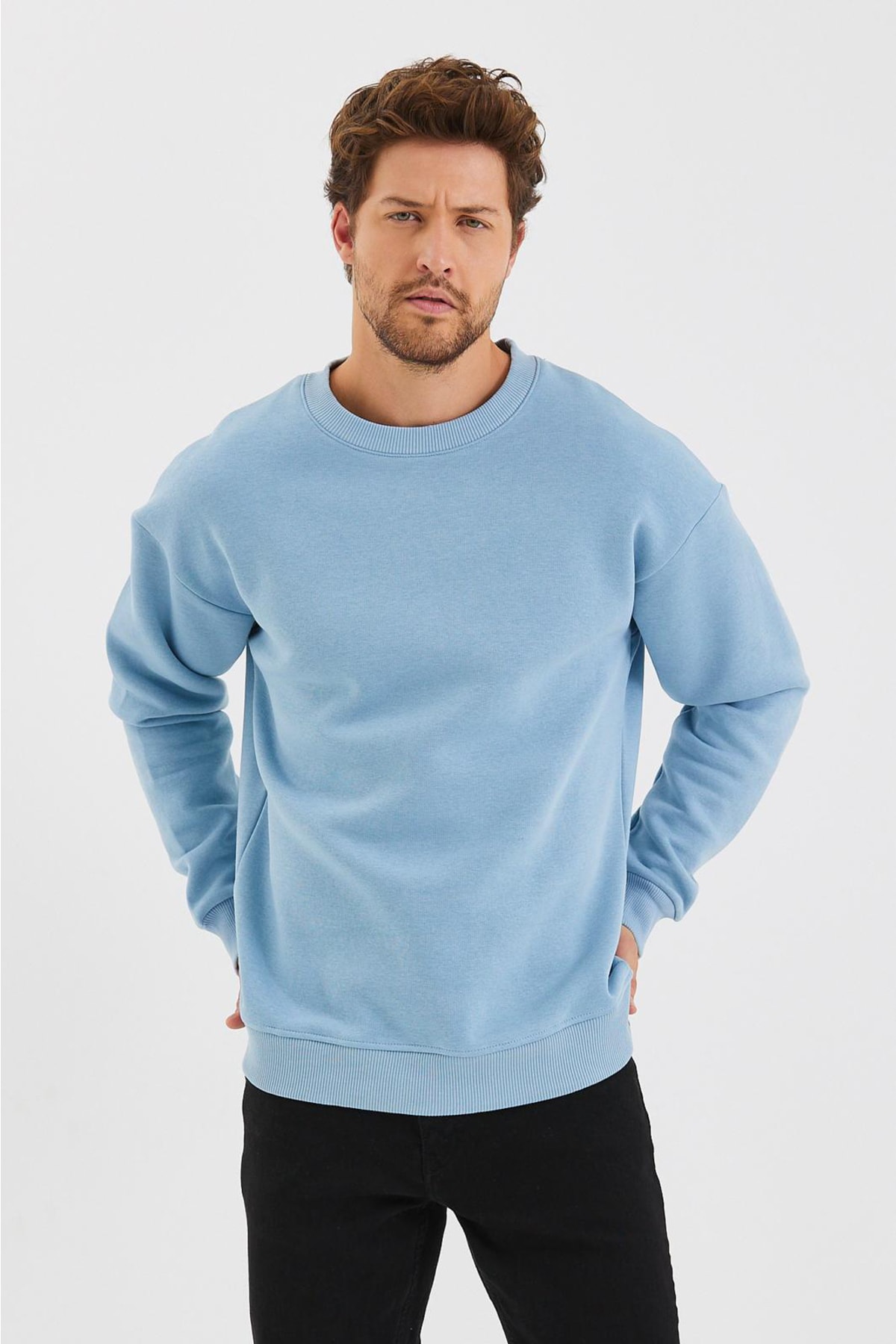 Bisiklet Yaka Baskılı Polarlı Sweatshirt Bisiklet Yaka Baskılı Polarlı Sweatshirt 9673 2XL