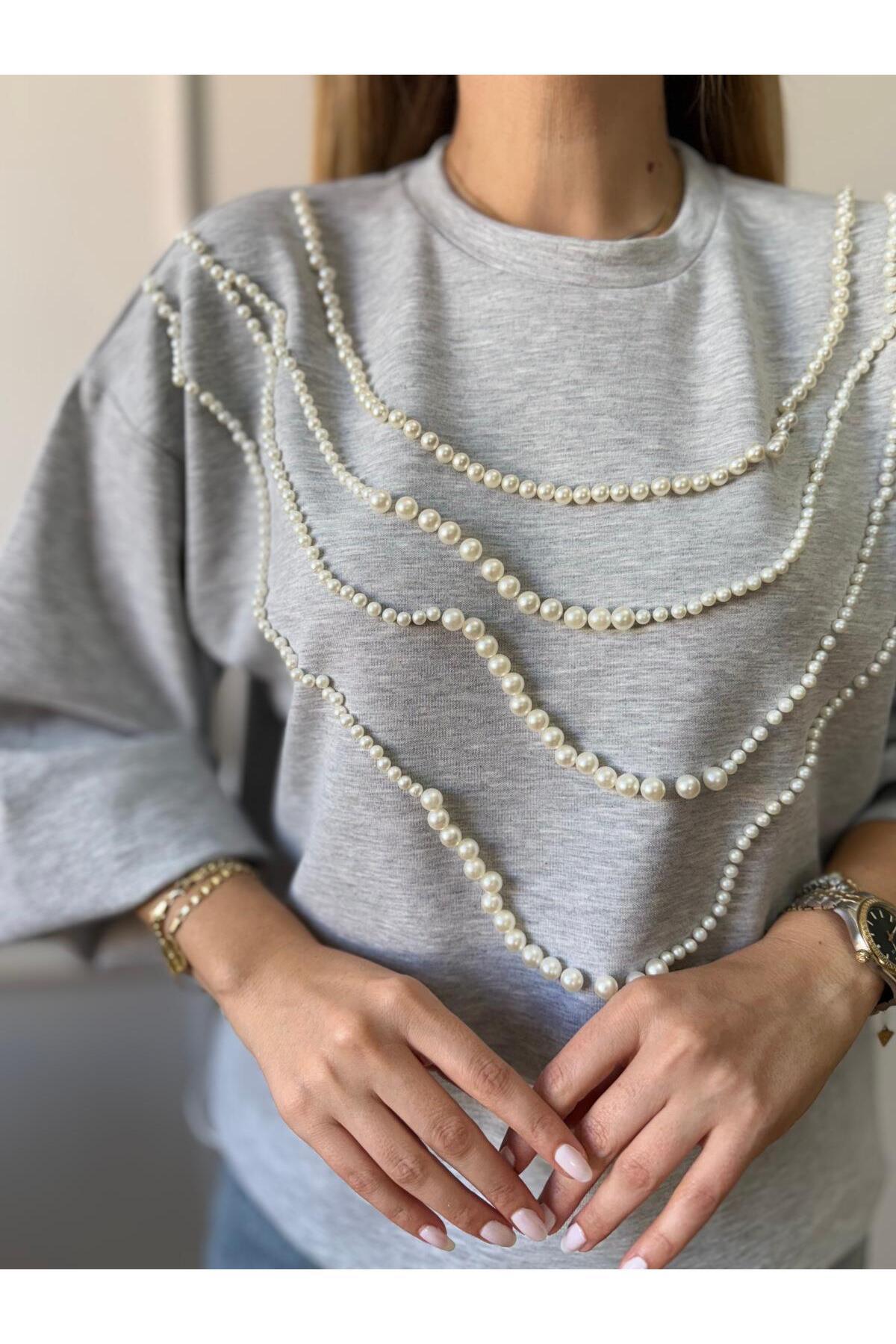 Gri İncili Premium Sweatshirt Gri İncili Premium Sweatshirt SZ0716127 L