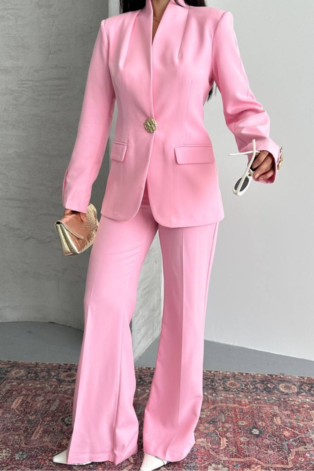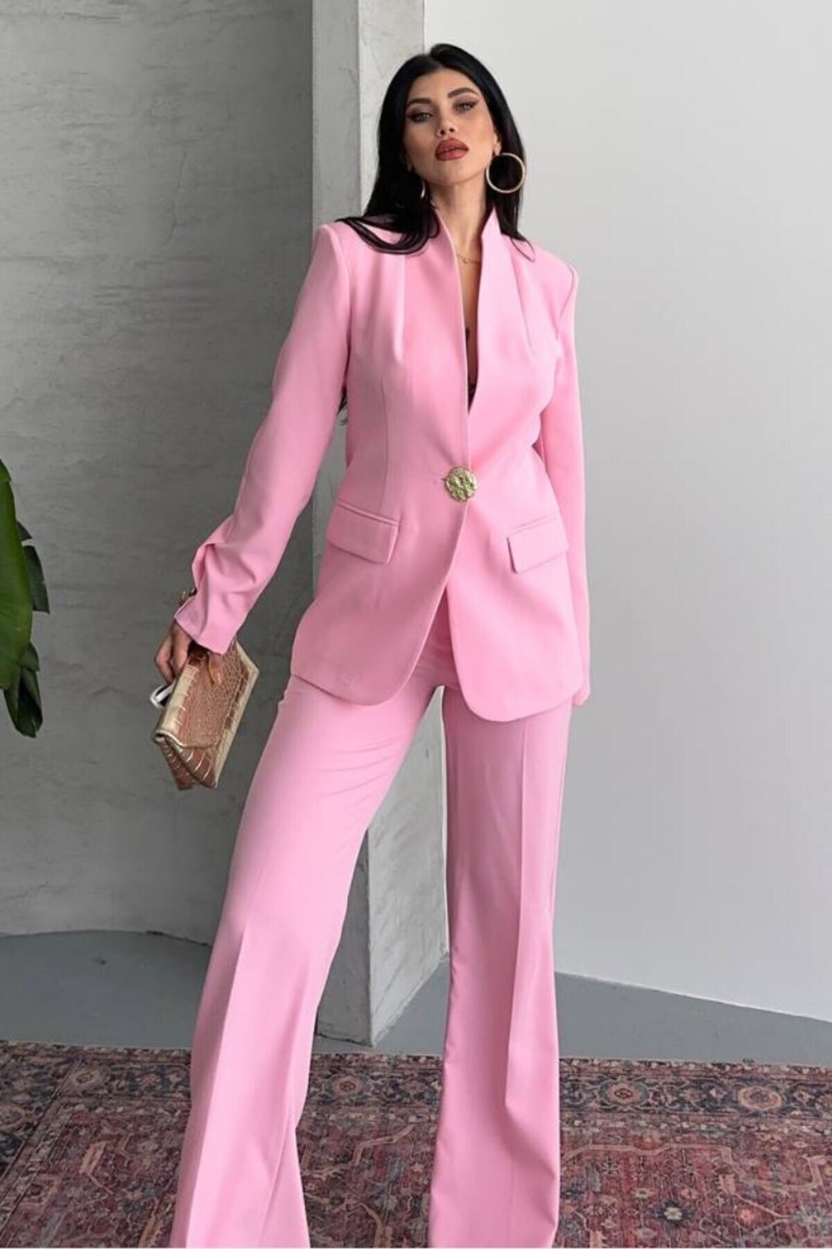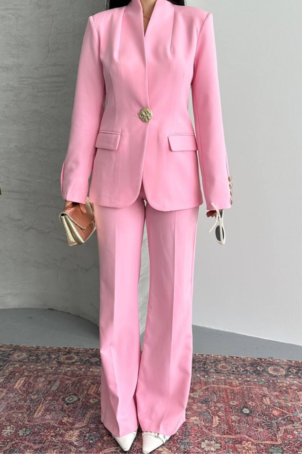 Kadın İkili Takım Şık Düğme Detaylı Dik Yaka Blazer Ceket Bol Paça Pantolon Takım Kadın İkili Takım Şık Düğme Detaylı Dik Yaka Blazer Ceket Bol Paça Pantolon Takım PRA-13120998-145025 42