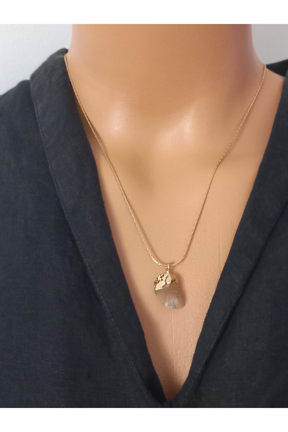 ALTIN KAPLAMA AKİK DOĞAL TAŞLI KOLYE ALTIN KAPLAMA AKİK DOĞAL TAŞLI KOLYE L0546 43 cm