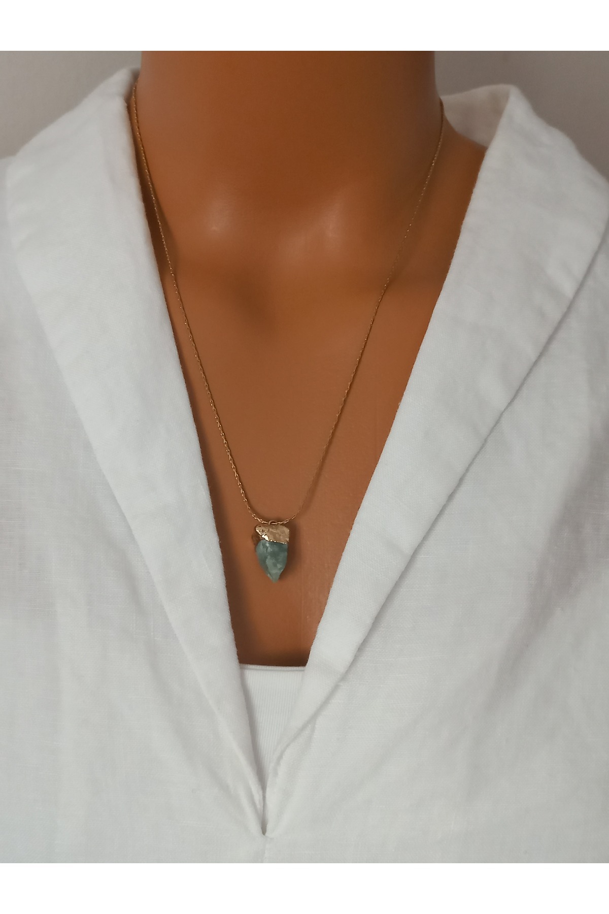 ALTIN KAPLAMA HAM AMOZONİT TAŞLI KOLYE ALTIN KAPLAMA HAM AMOZONİT TAŞLI KOLYE L0546 43 cm