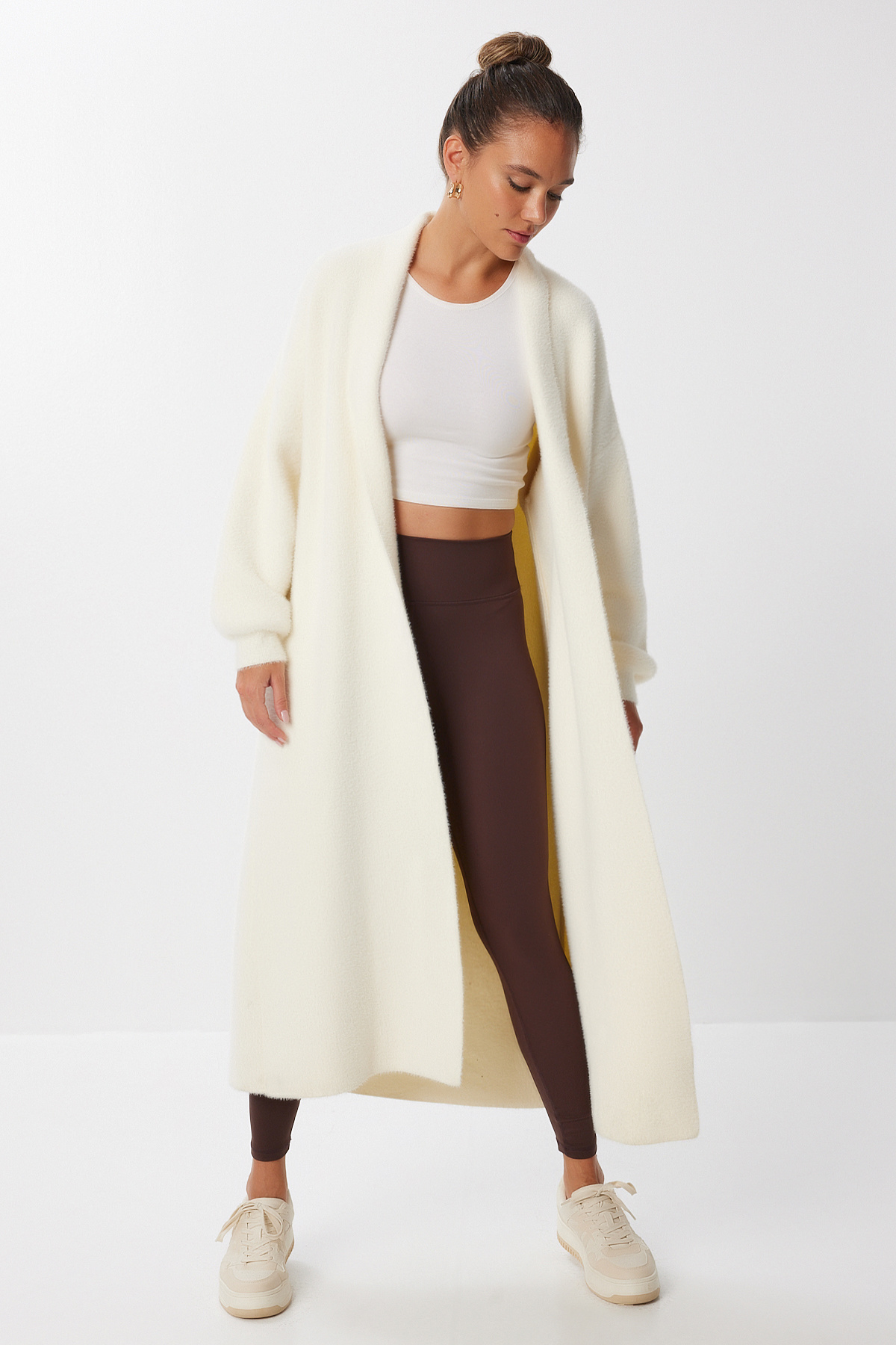 Bej Yumuşak Dokulu Sakallı Kadın Uzun Triko Hırka Bej Yumuşak Dokulu Sakallı Kadın Uzun Triko Hırka 26958 Standart