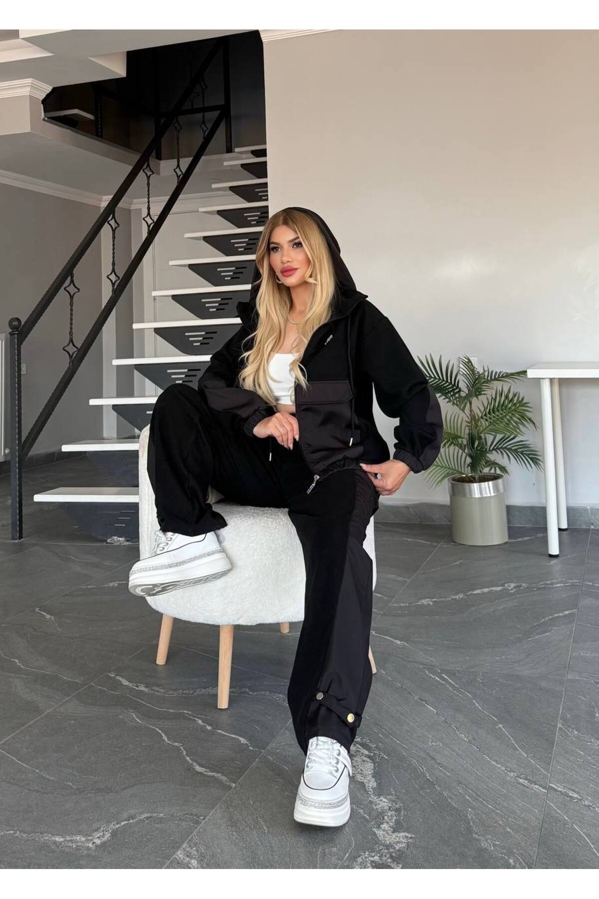 Triko Detaylı Cepli Fermuarlı Alt Üst Spor Takım Triko Detaylı Cepli Fermuarlı Alt Üst Spor Takım RDWMN8203 XL
