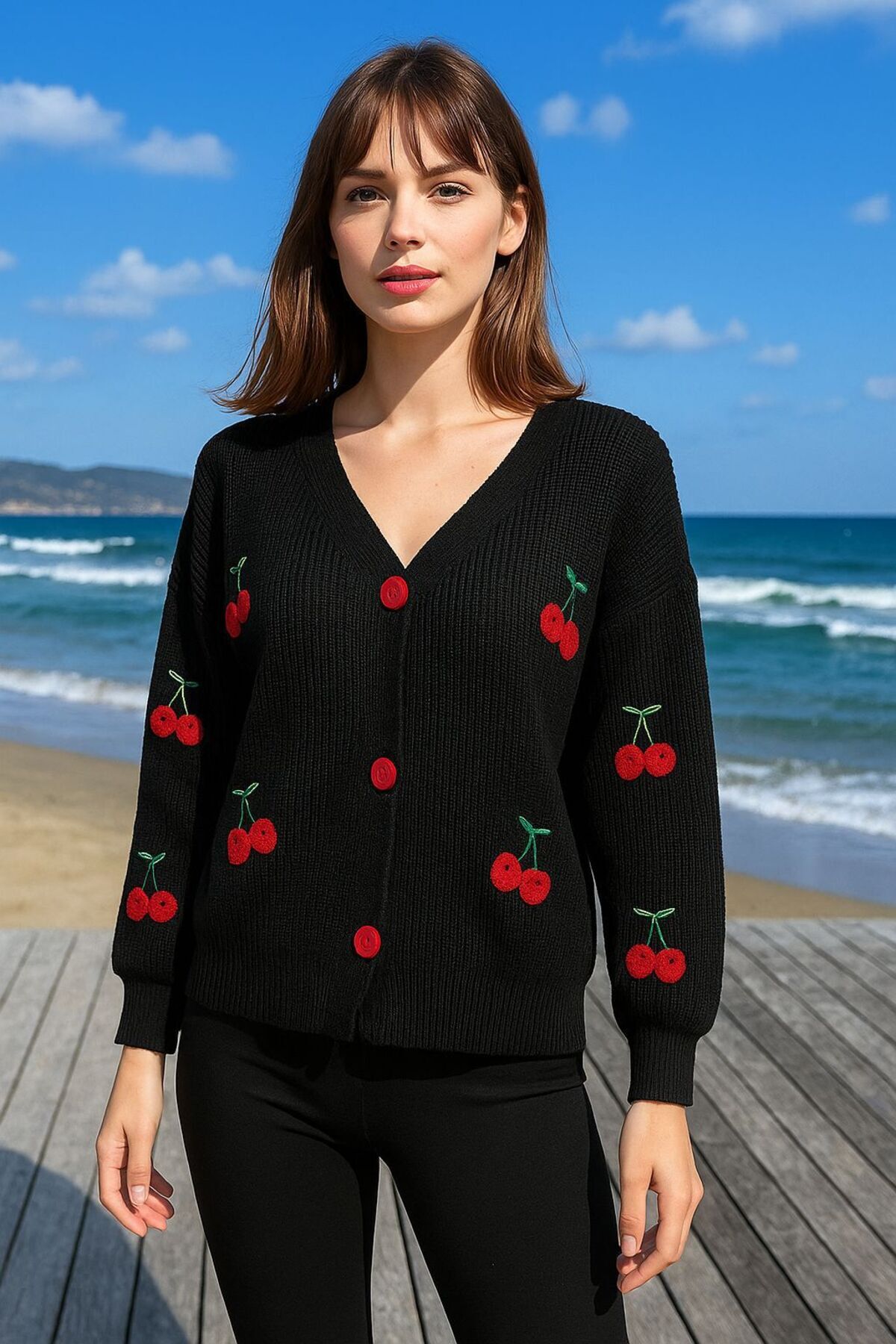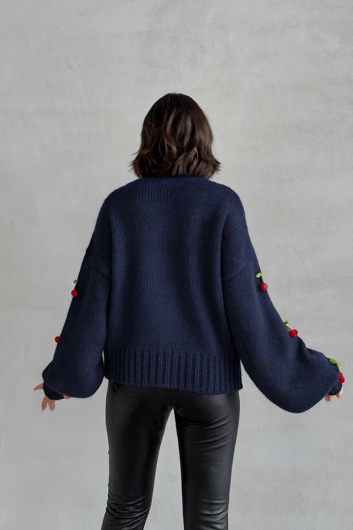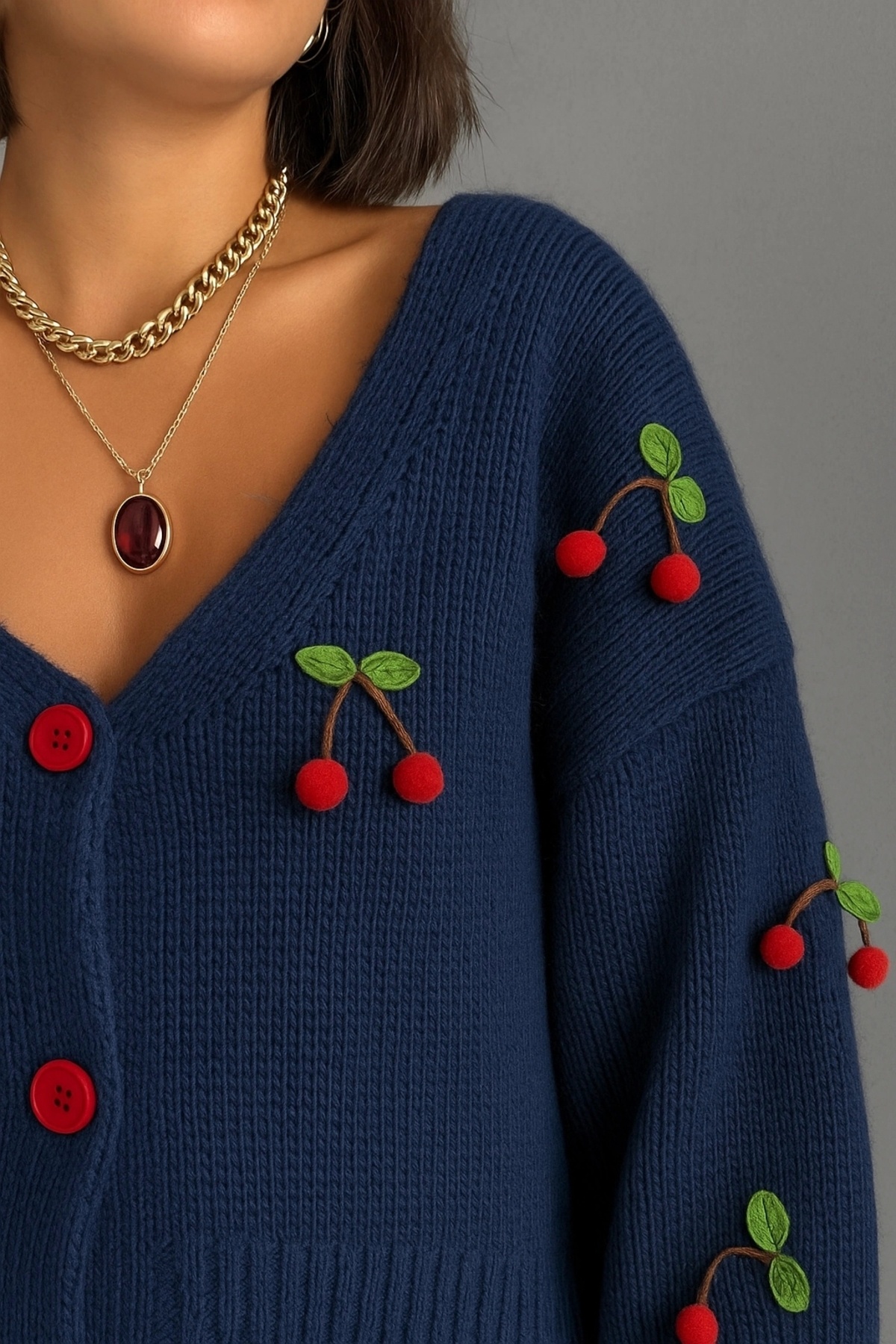 Kadın Lacivert Kiraz Aksesuarlı Triko Hırka Kadın Lacivert Kiraz Aksesuarlı Triko Hırka LSN0201 Standart