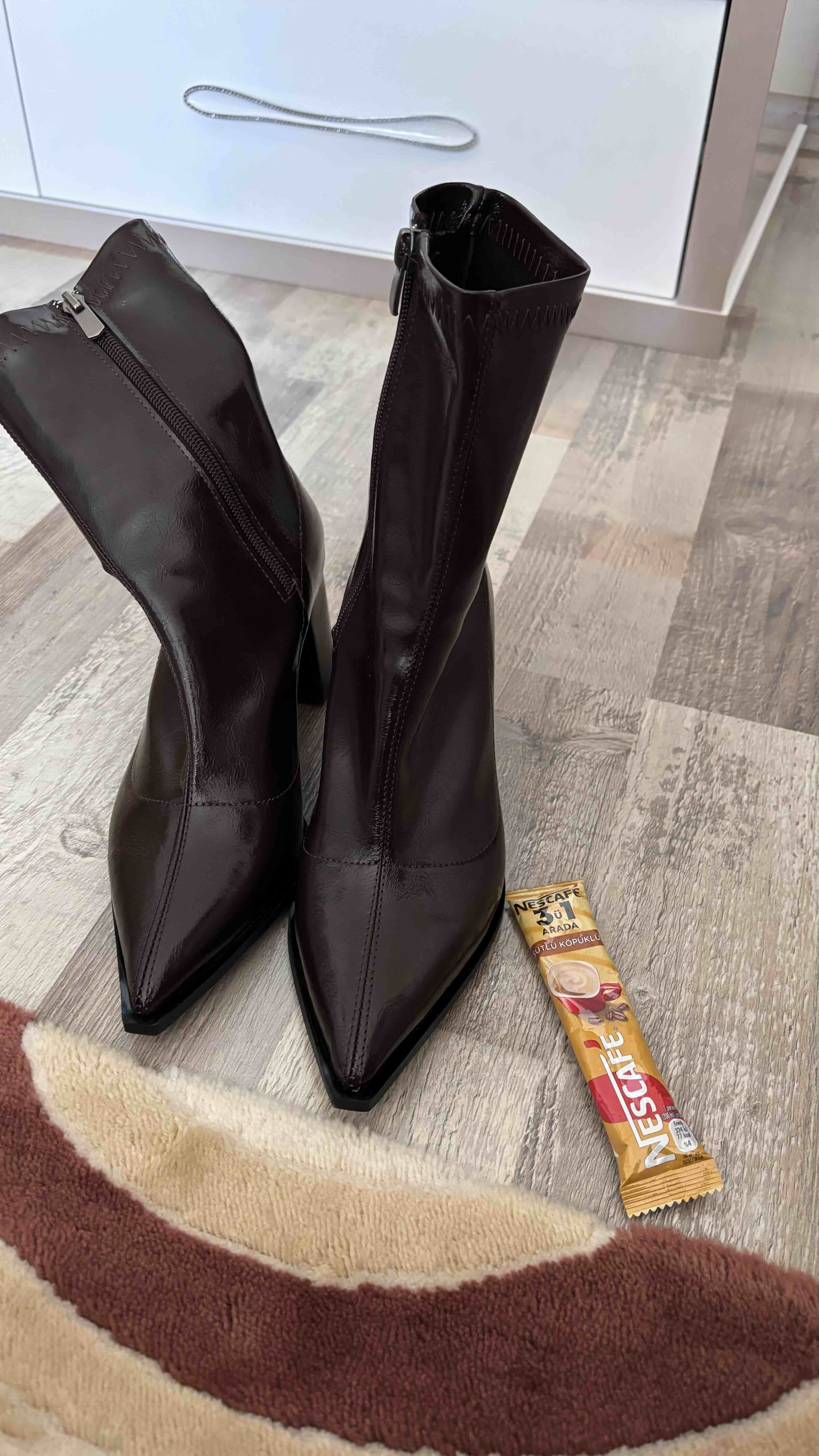 Kadın Kahverengi Rugan Streç Bilek Boy Kalın Topuklu Bot Ayakkabı Fermuarlı Kadın Kahverengi Rugan Streç Bilek Boy Kalın Topuklu Bot Ayakkabı Fermuarlı n-875 40