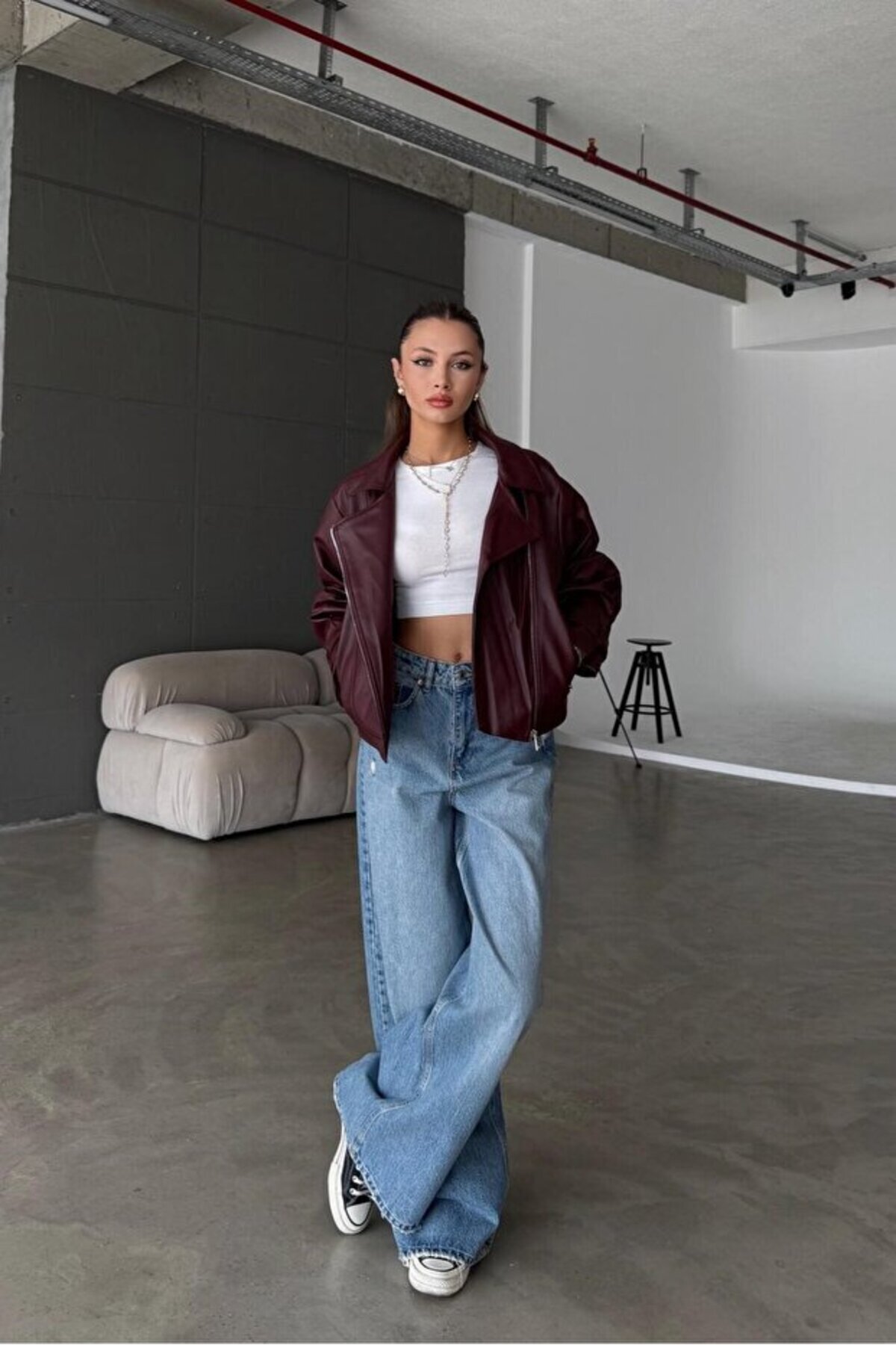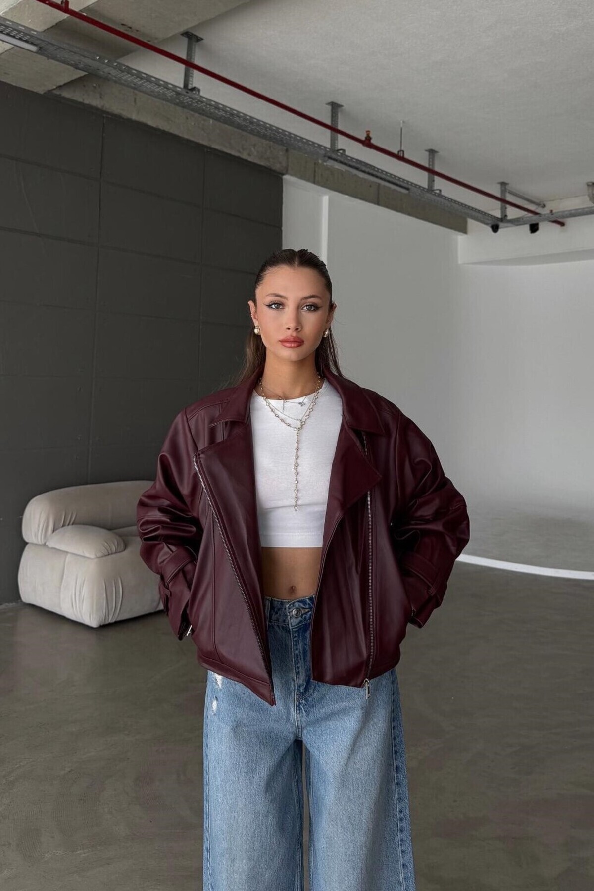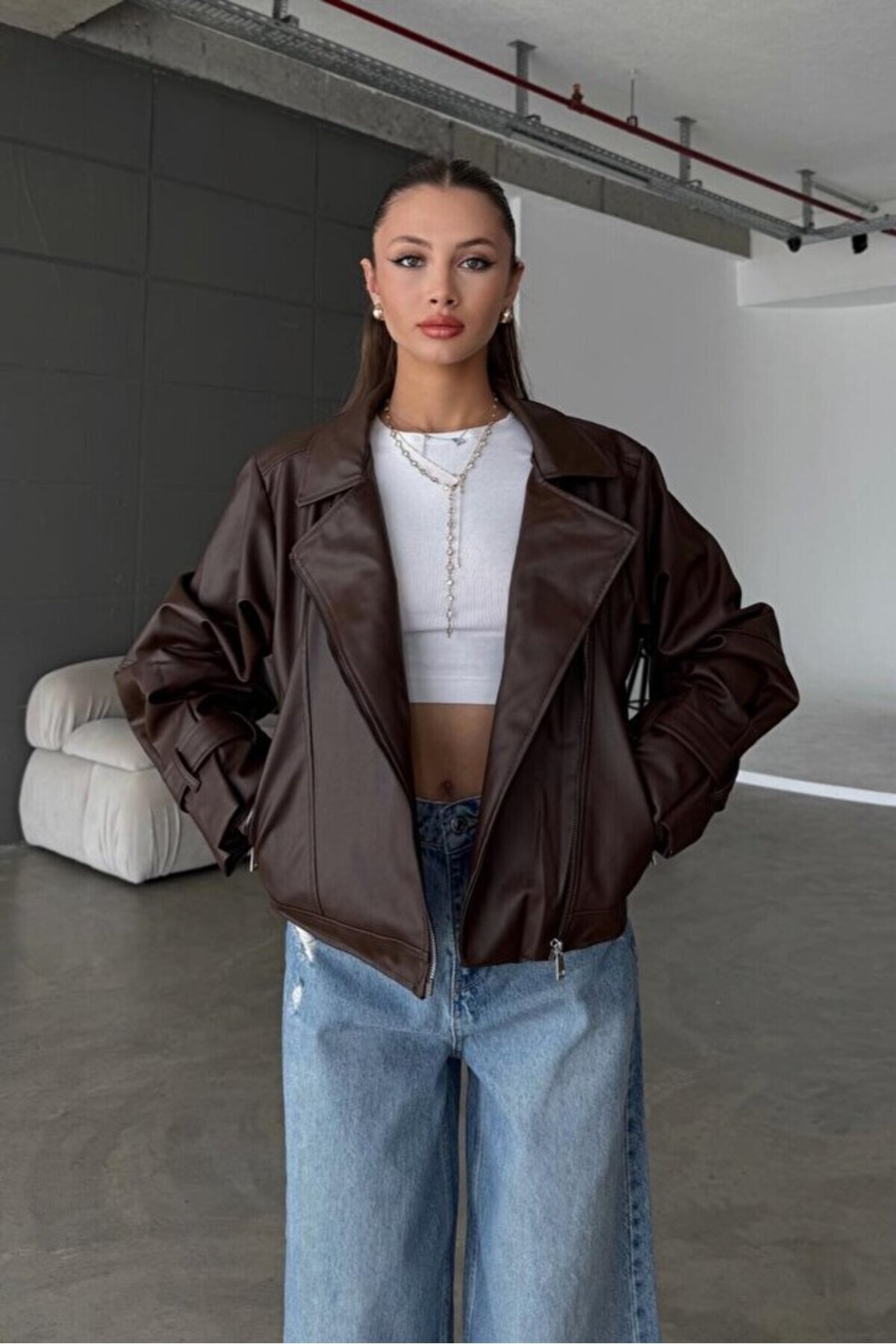 Kadın Yeni Sezon Oversize Balon Kol Deri Ceket Kadın Yeni Sezon Oversize Balon Kol Deri Ceket By Maysa 25dr11 XL