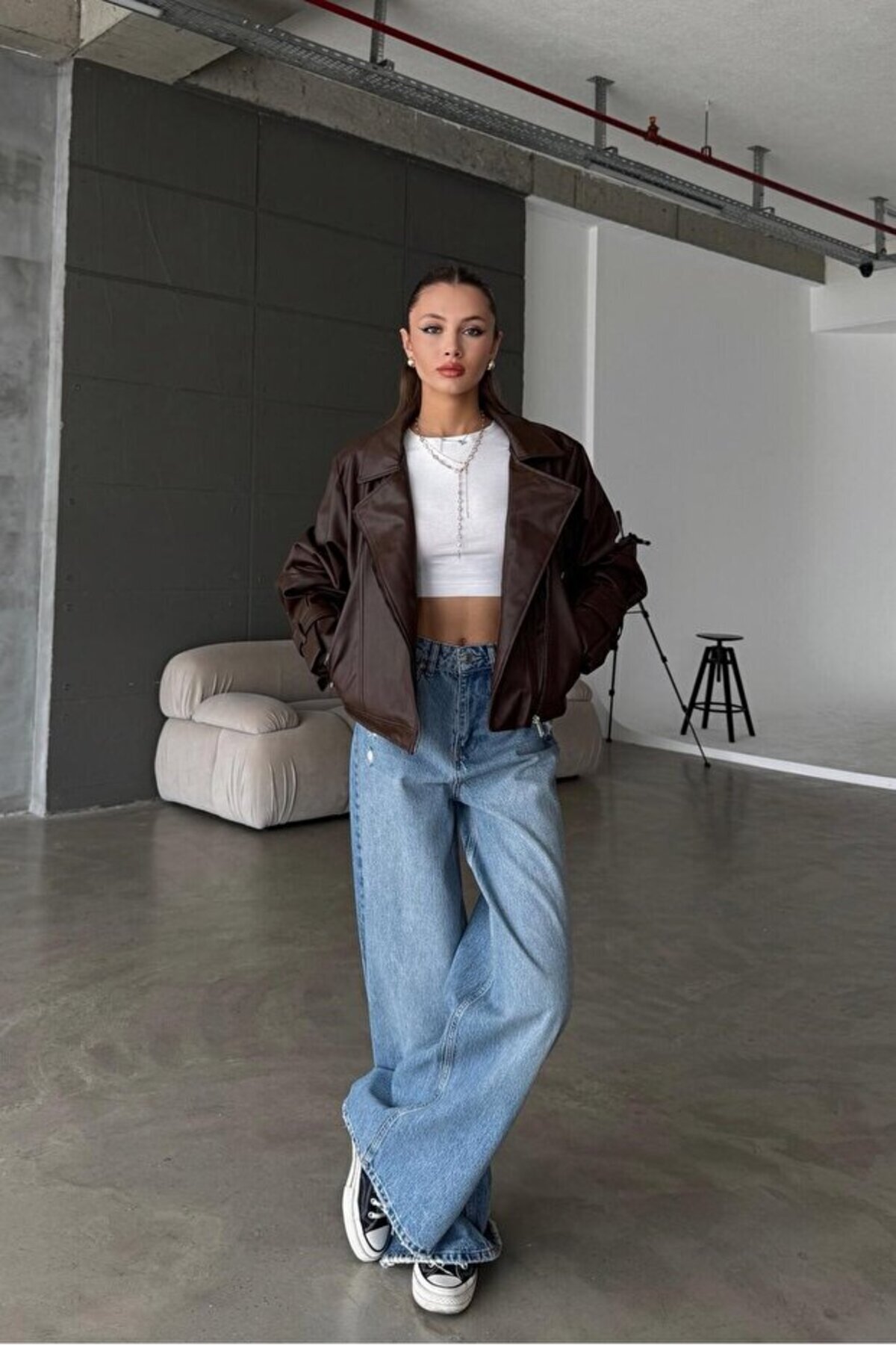 Kadın Yeni Sezon Oversize Balon Kol Deri Ceket Kadın Yeni Sezon Oversize Balon Kol Deri Ceket By Maysa 25dr11 XL