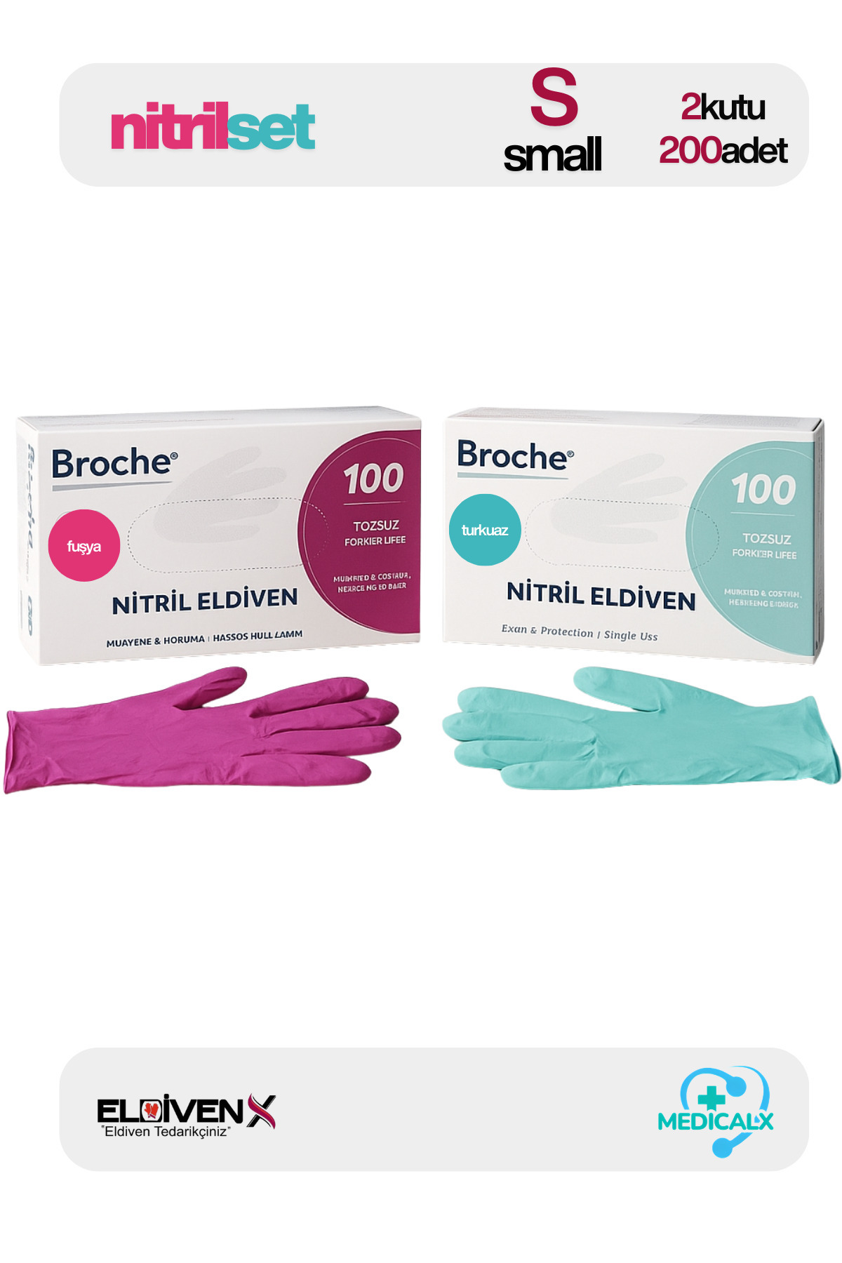 PembeSET Fuşya Pembe & Toz Pembe Nitril Muayene Eldiveni 200 Adet - Small PembeSET Fuşya Pembe & Toz Pembe Nitril Muayene Eldiveni 200 Adet - Small eldivenx2009356 تک سایز