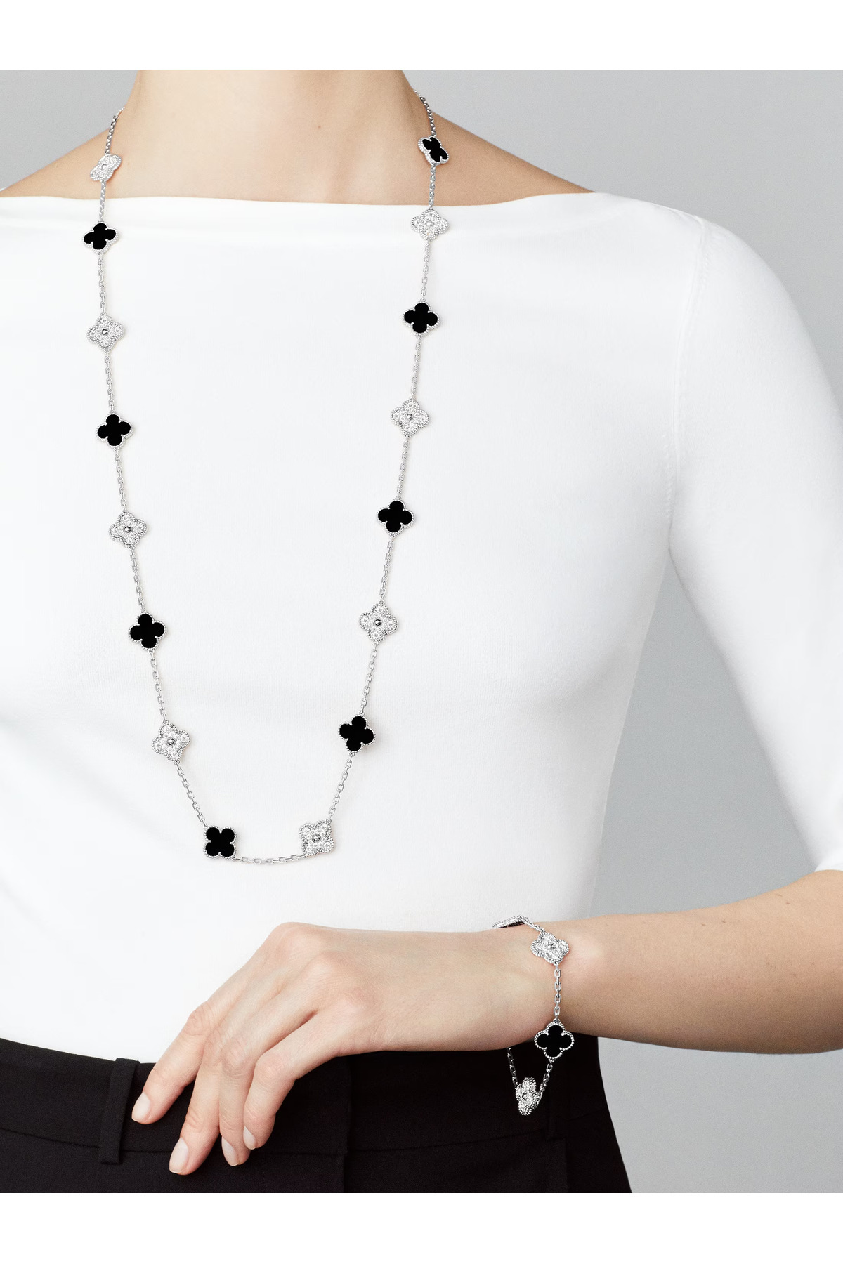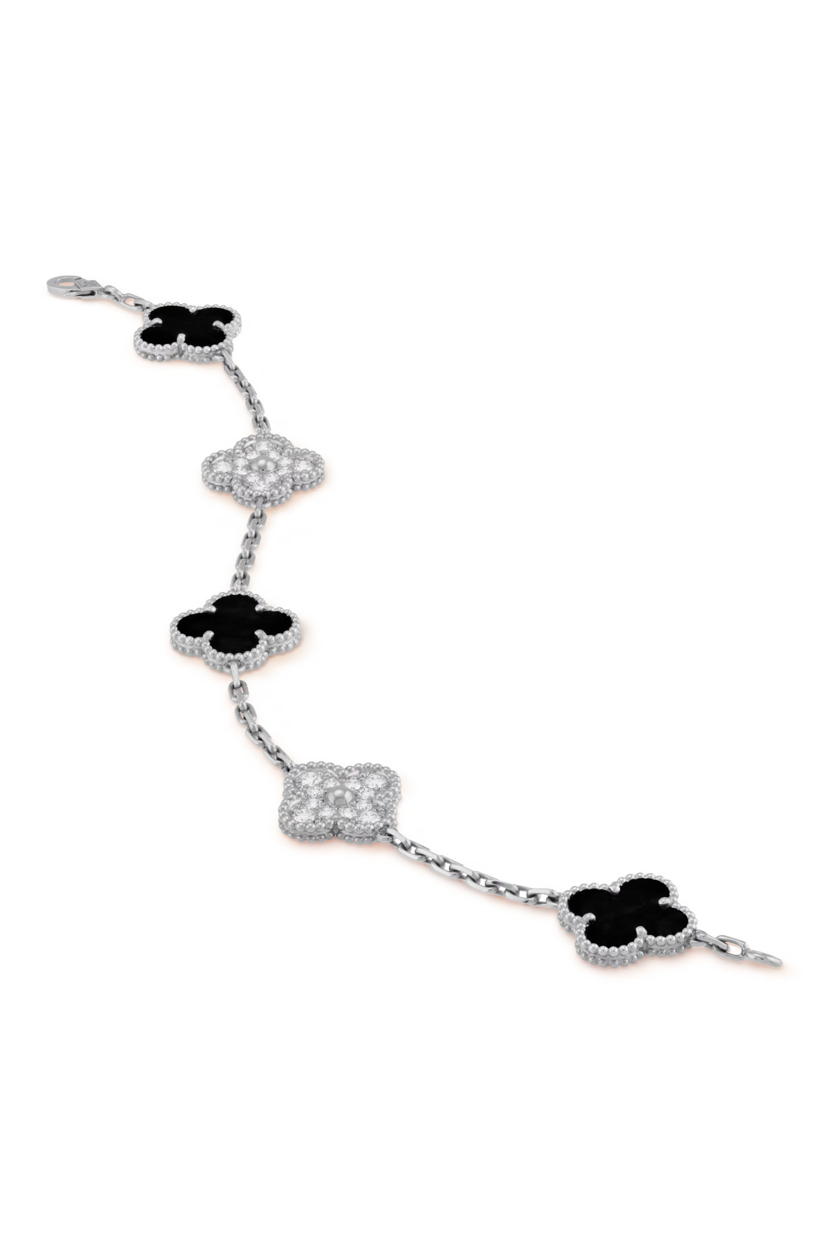 & Vintage Alhambra Bileklik, 5 motif Siyah Oniks ve Zirkon Taşlı 925 Ayar Gümüş & Vintage Alhambra Bileklik, 5 motif Siyah Oniks ve Zirkon Taşlı 925 Ayar Gümüş 7845100111101 18 cm