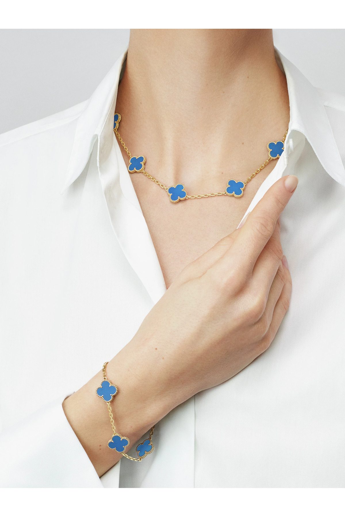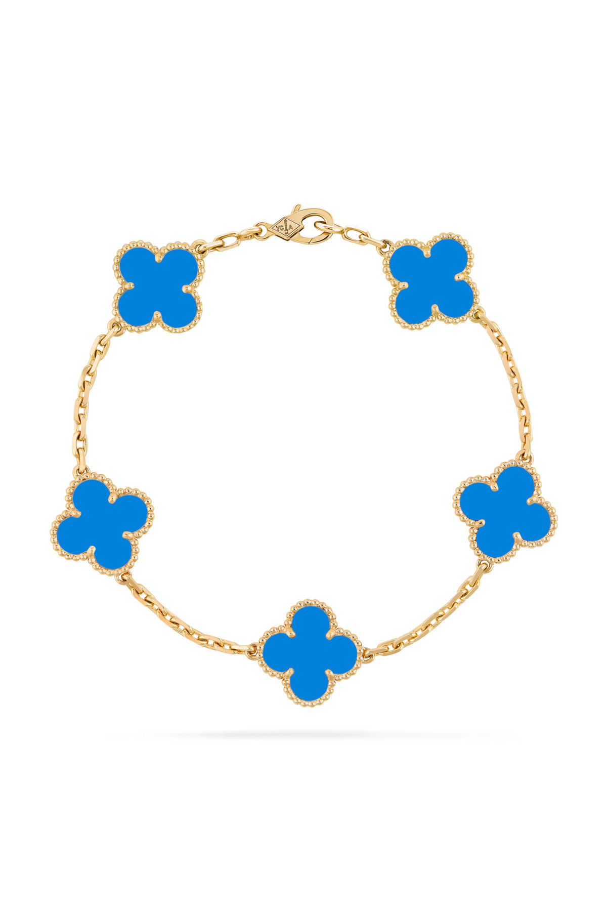 & Vintage Alhambra Bileklik, 5 motif Mavi Akik Taşlı 925 Ayar Gümüş & Vintage Alhambra Bileklik, 5 motif Mavi Akik Taşlı 925 Ayar Gümüş 70121101111177741 19 cm