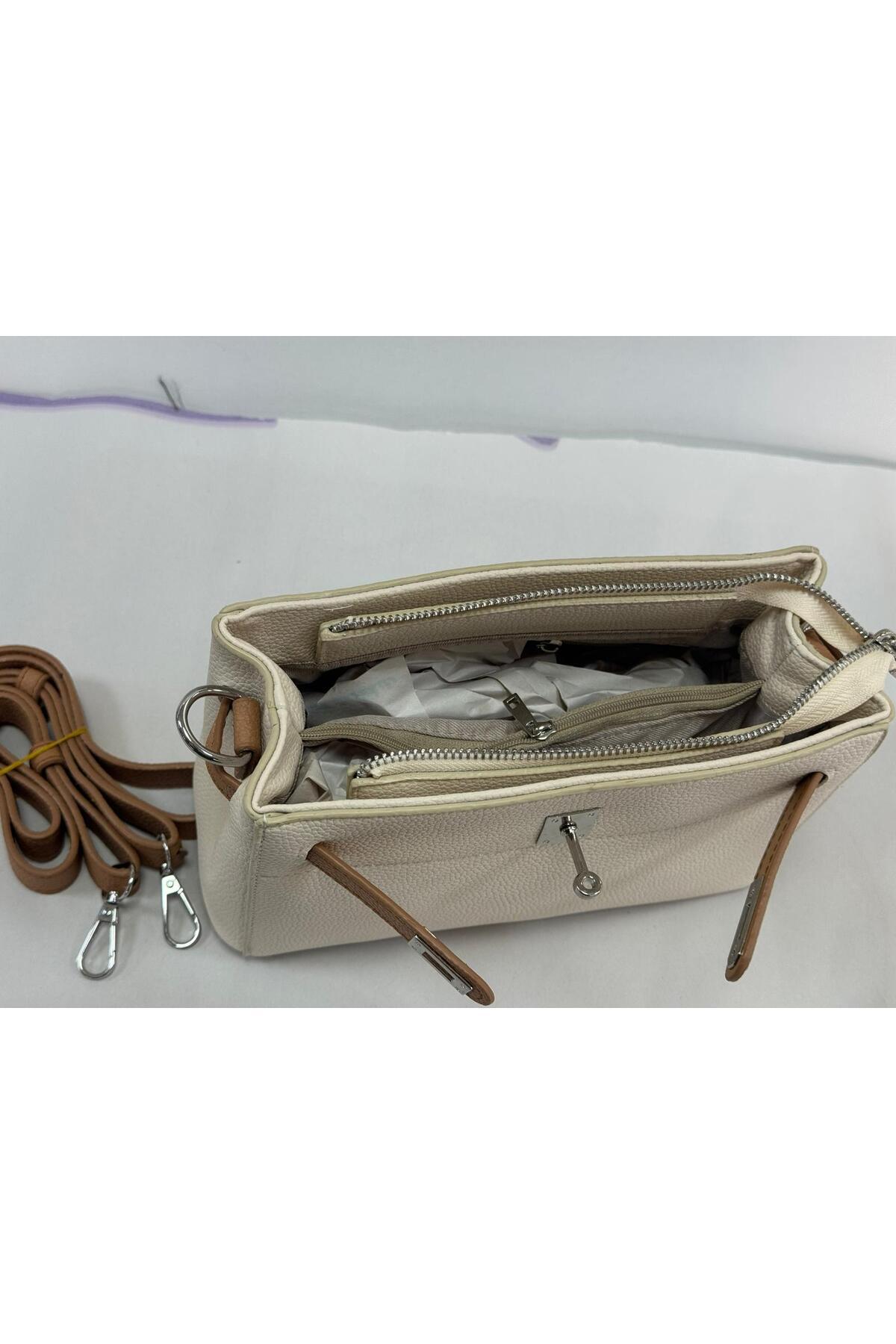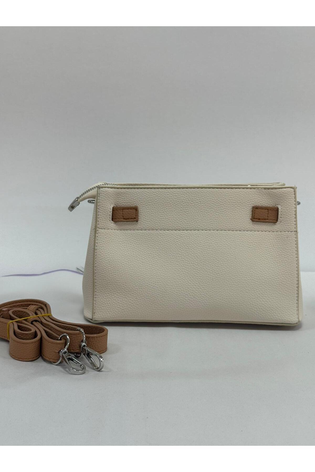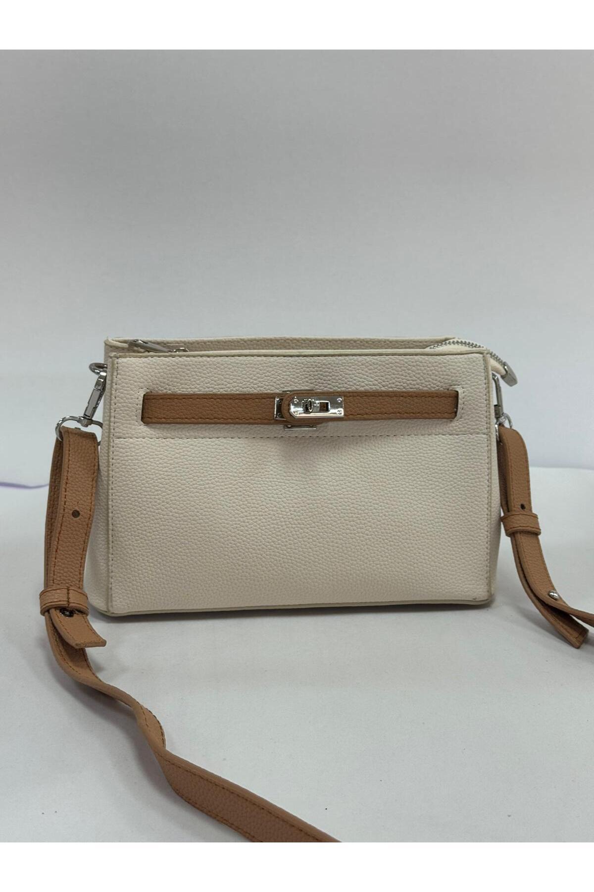 Krem-Camel Kilit Detaylı Çok Bölmeli Çapraz Askılı Kadın Çanta Krem-Camel Kilit Detaylı Çok Bölmeli Çapraz Askılı Kadın Çanta AC-723 تک سایز