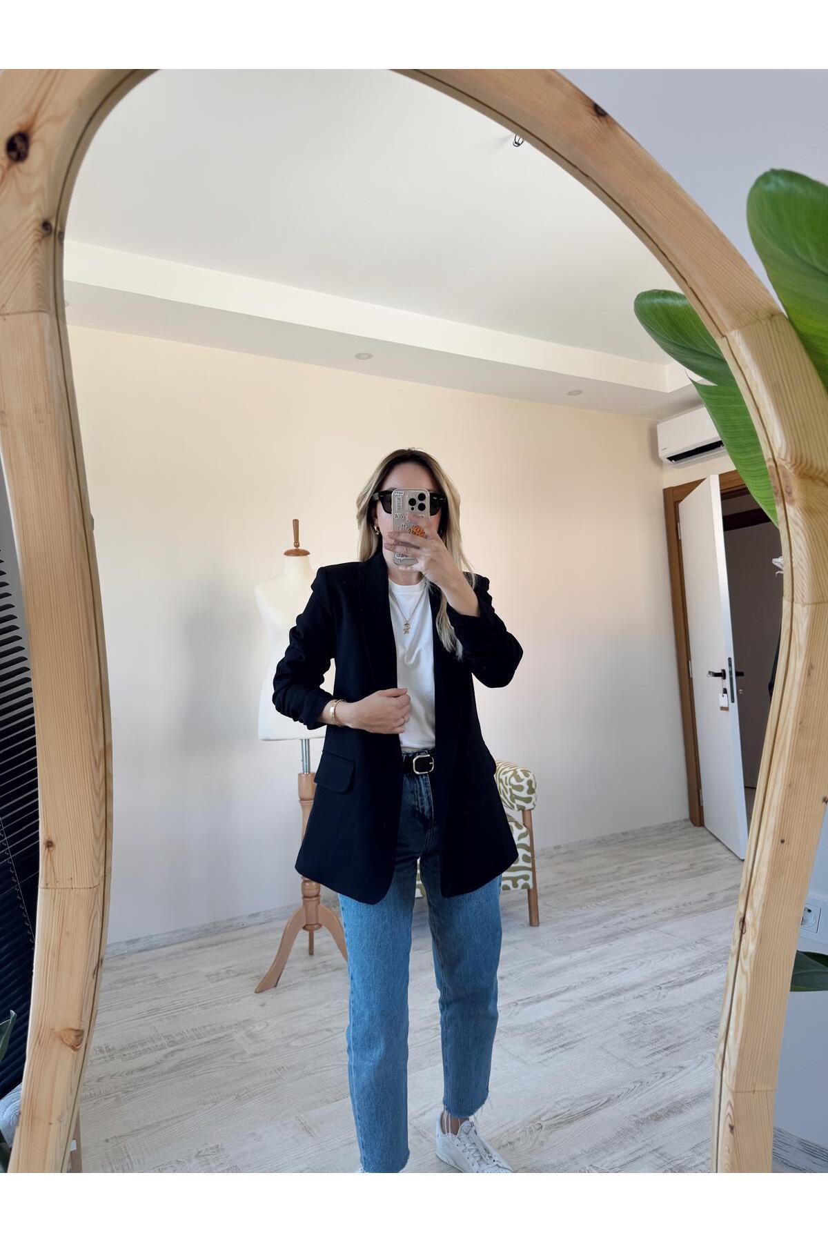 Kolları Büzgülü Kruvaze Yaka Düğmesiz Blazer Ceket Kolları Büzgülü Kruvaze Yaka Düğmesiz Blazer Ceket BYS202510075 L