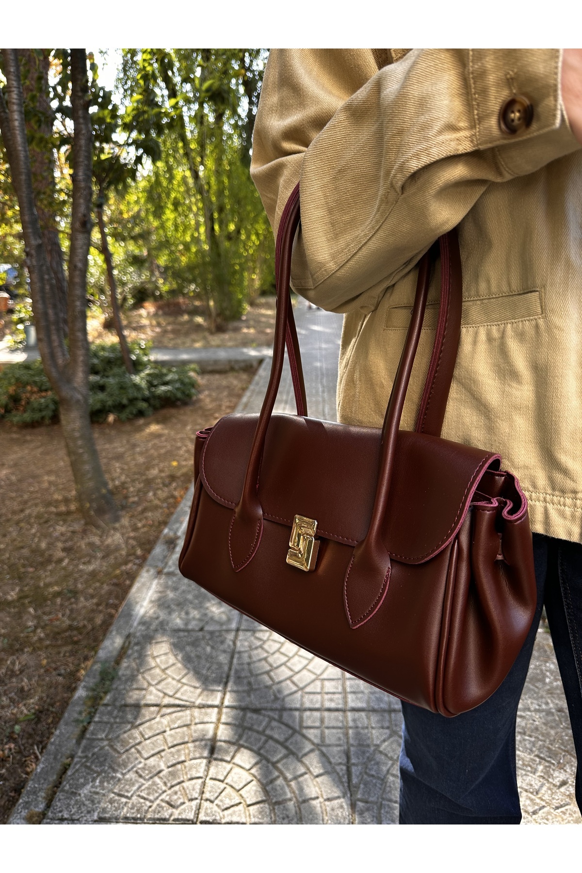 Gold detaylı bordo omuz çantası Gold detaylı bordo omuz çantası CBS0005. تک سایز