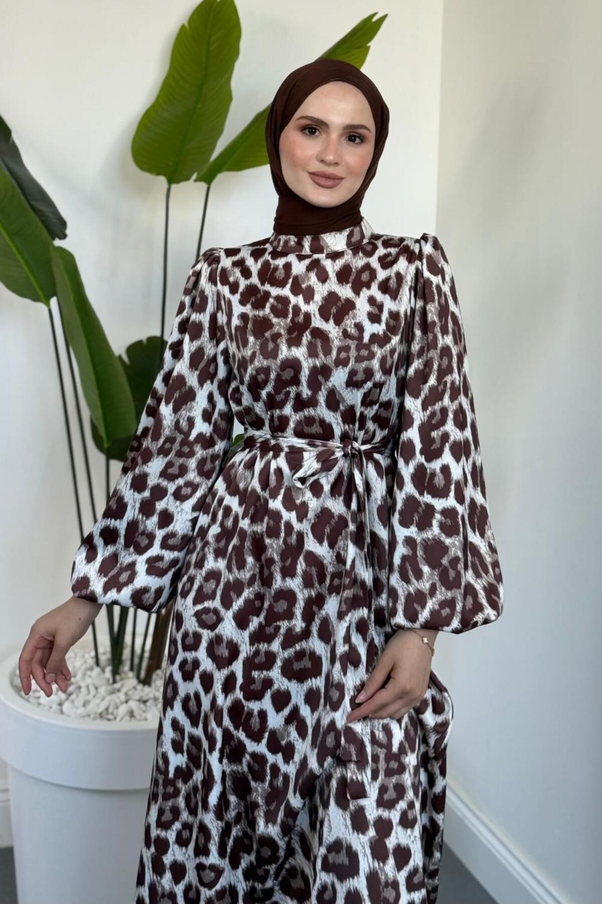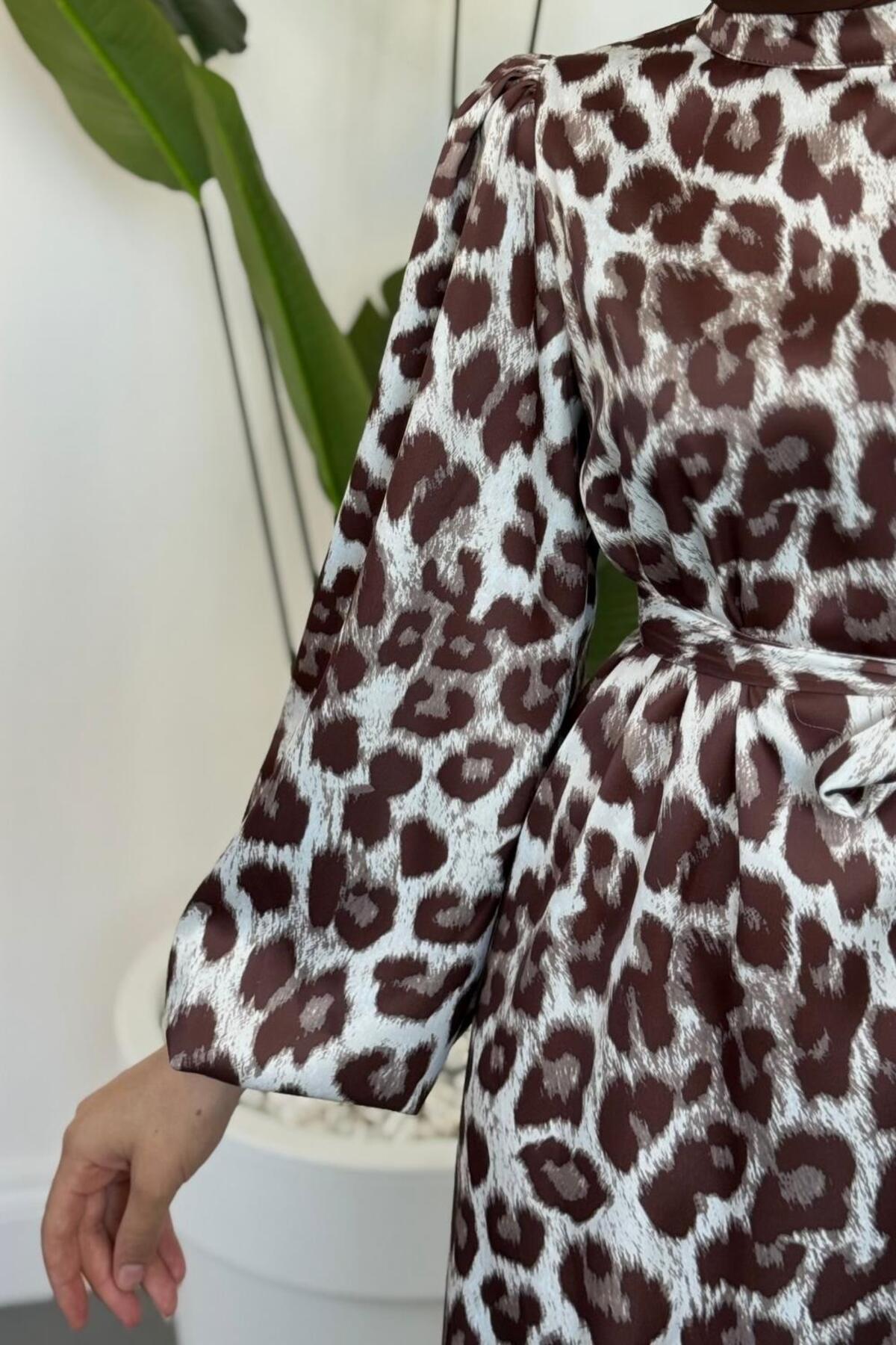 Kimberly Leopar Desen Saten Elbise Kahverengi Kimberly Leopar Desen Saten Elbise Kahverengi 1154 44