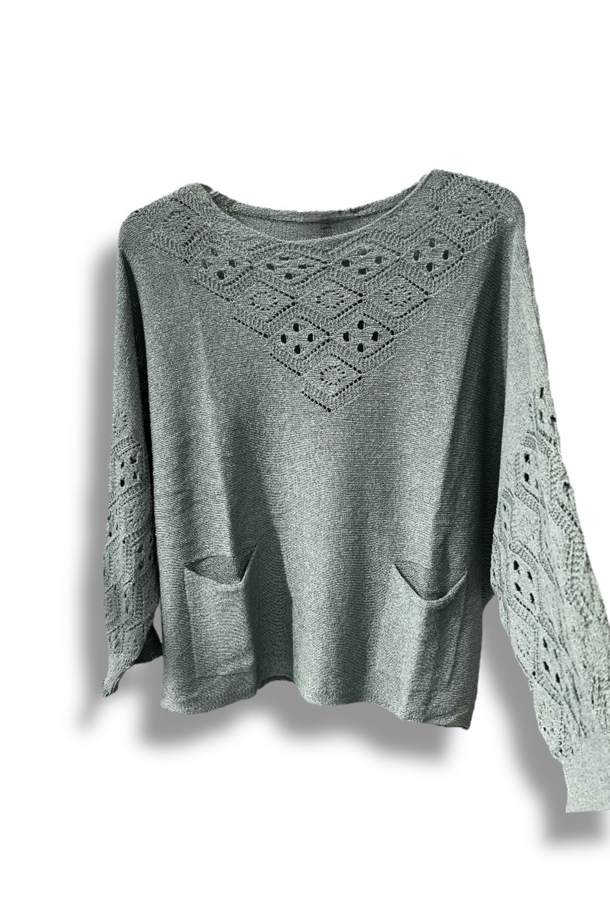 Oversize Merserize Triko Cepli ve Ajurlu Tasarım Bluz- 38-52 Beden Arası Uyumlu Oversize Merserize Triko Cepli ve Ajurlu Tasarım Bluz- 38-52 Beden Arası Uyumlu 27501992 Standart