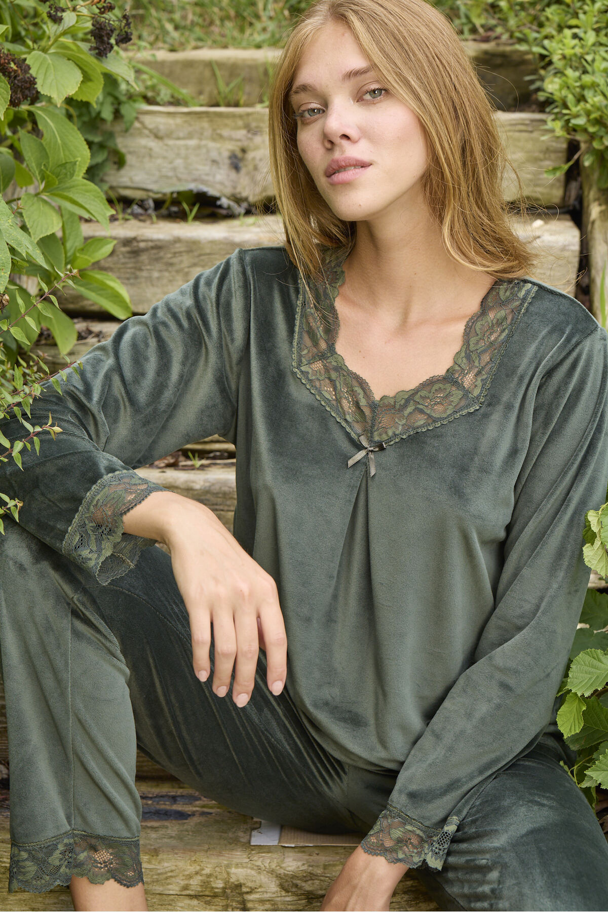 Haki Yumuşak Dokulu, Şık ve Rahat Fransız Kadife Yakası Fırfırlı Düğmeli Pijama Takım Haki Yumuşak Dokulu, Şık ve Rahat Fransız Kadife Yakası Fırfırlı Düğmeli Pijama Takım 3705 2XL