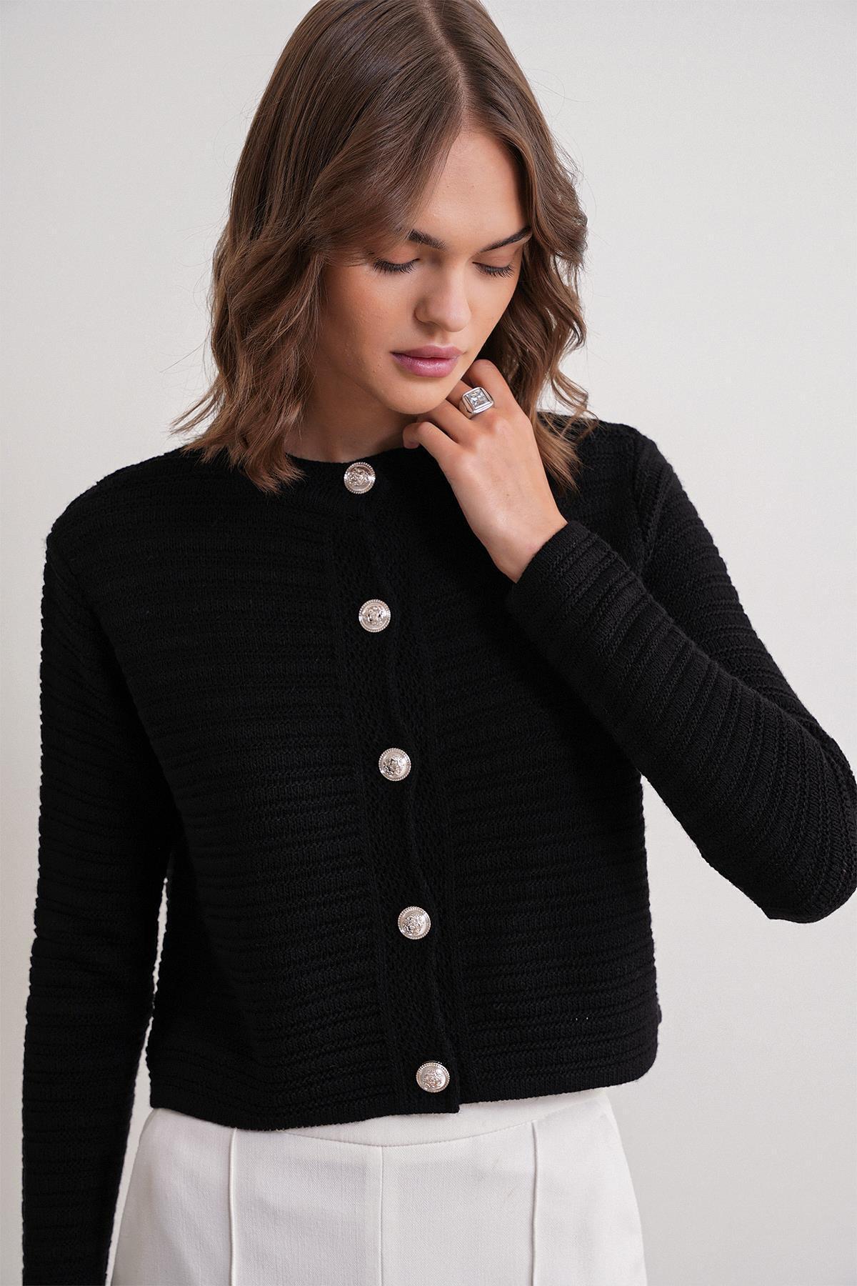 6778 Kadın Links Desenli Crop Triko Hırka Siyah 6778 Kadın Links Desenli Crop Triko Hırka Siyah K25HRK6778 Standart
