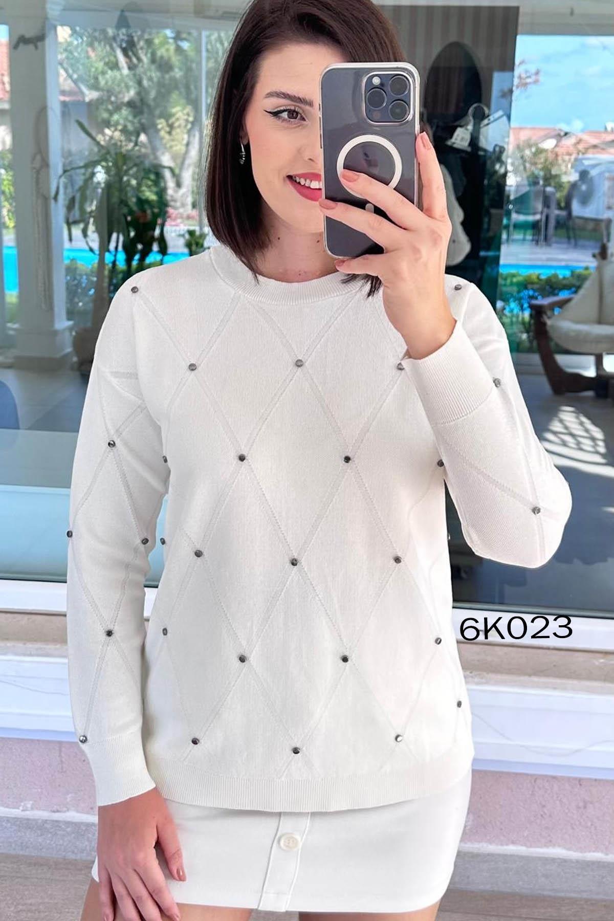 Yaka Detay Ajurlu Triko Bluz 6k041 Yaka Detay Ajurlu Triko Bluz 6k041 Standart