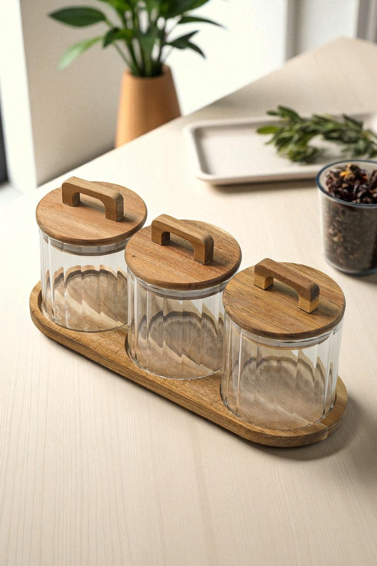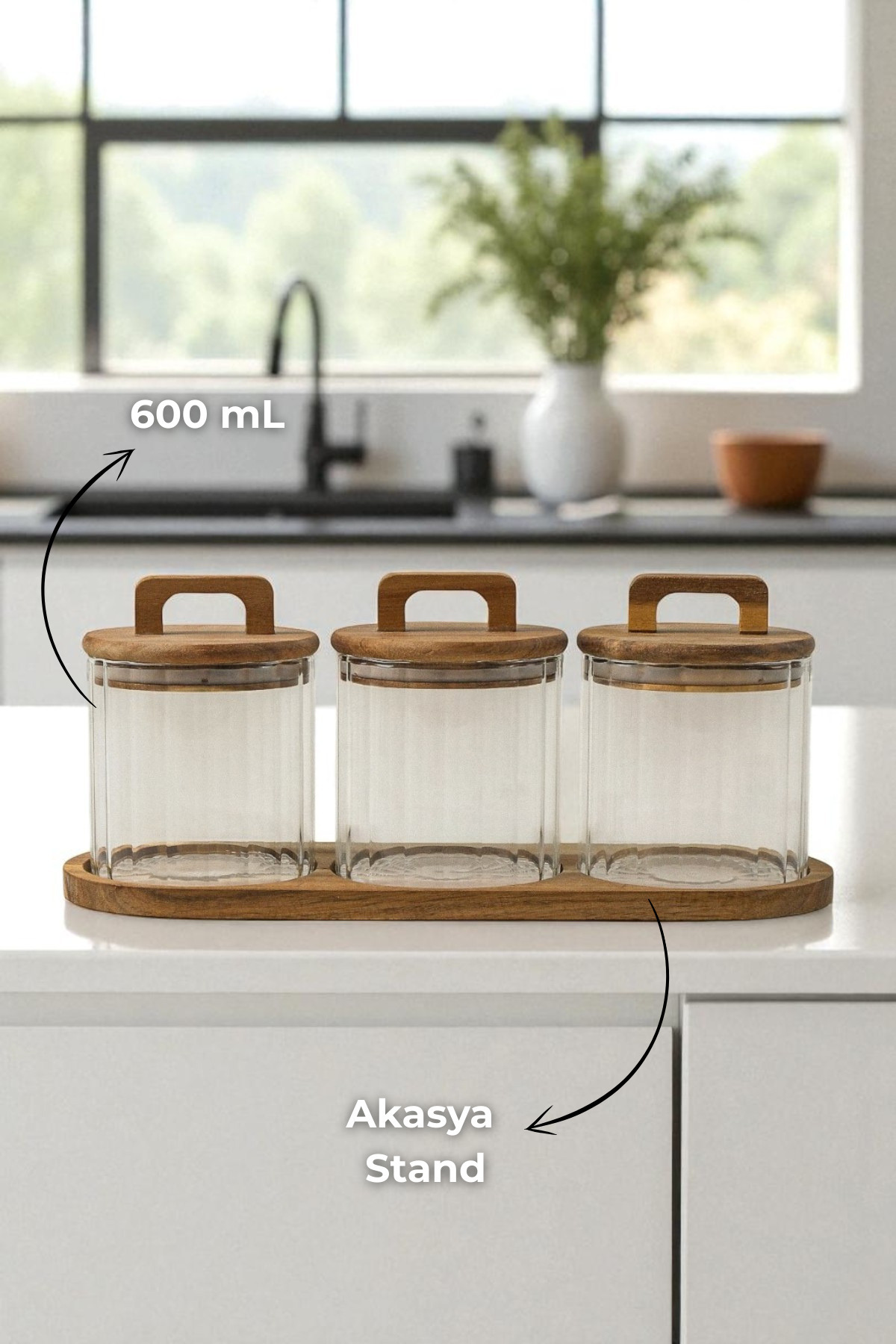 Lidia Üçlü Akasya Standlı Kavanoz Seti Lidia Üçlü Akasya Standlı Kavanoz Seti SEVİNSE827 تک سایز