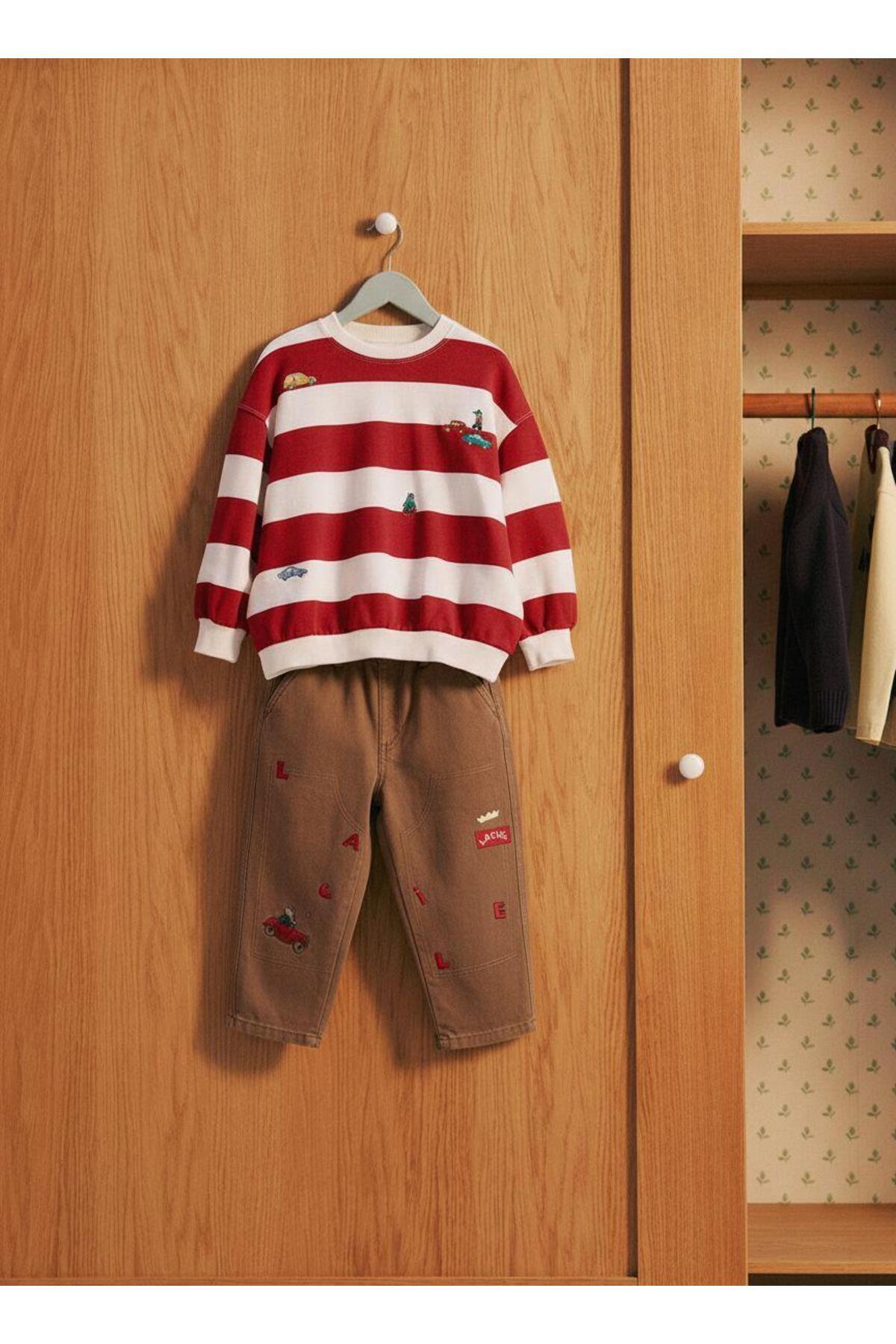 Erkek Çocuk Pamuklu Çizgili Kırmızı Sweatshirt ve Nakışlı Kahverengi Pantolon Takım Erkek Çocuk Pamuklu Çizgili Kırmızı Sweatshirt ve Nakışlı Kahverengi Pantolon Takım Mg26Winter280 6-7 Yaş