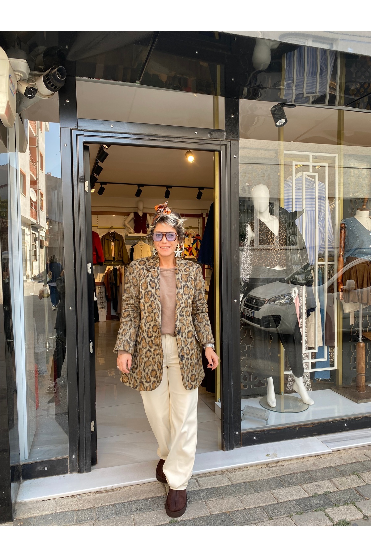 Taş Leopar Desenli Ceket Taş Leopar Desenli Ceket POP11904 L