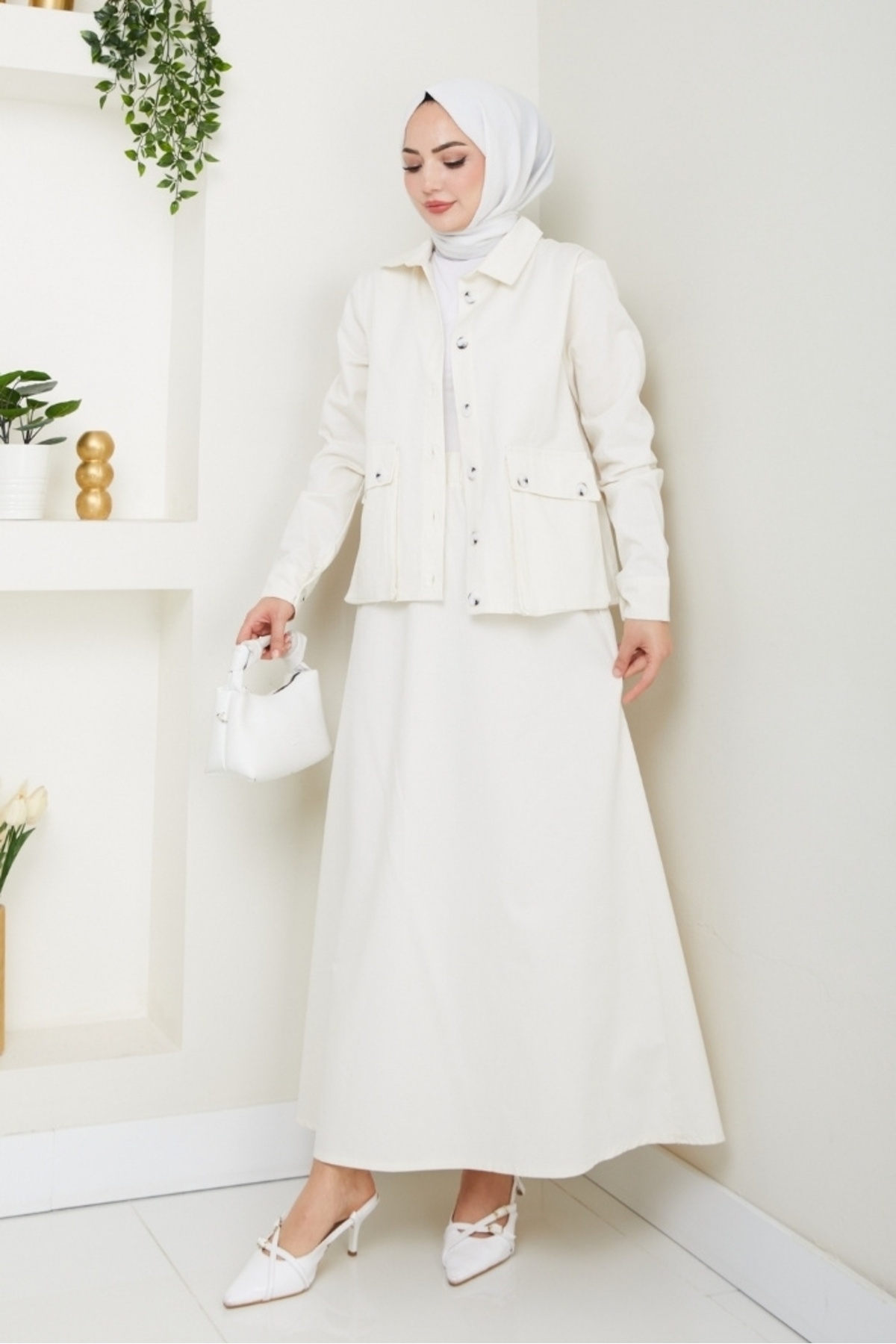 Fermuarlı Oversize Takım 1595 - Beyaz Fermuarlı Oversize Takım 1595 - Beyaz CDILK0ANT1595 44