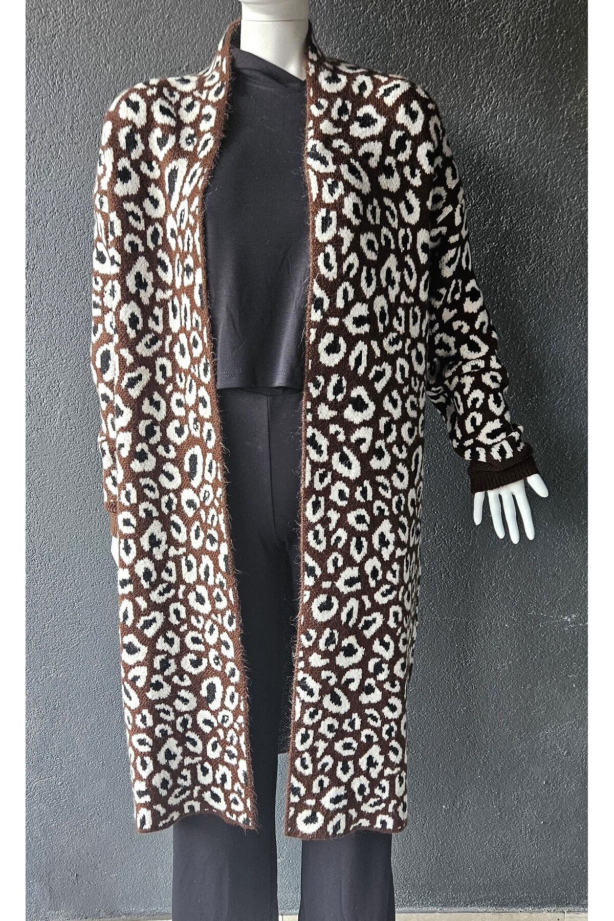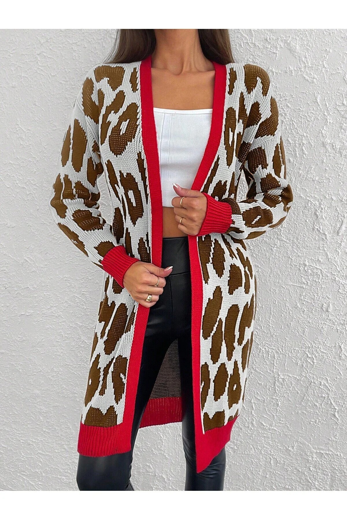 Kadın Leopar Desenli Uzun Triko Hırka Kahverengi Kadın Leopar Desenli Uzun Triko Hırka Kahverengi TR-22328 2XL