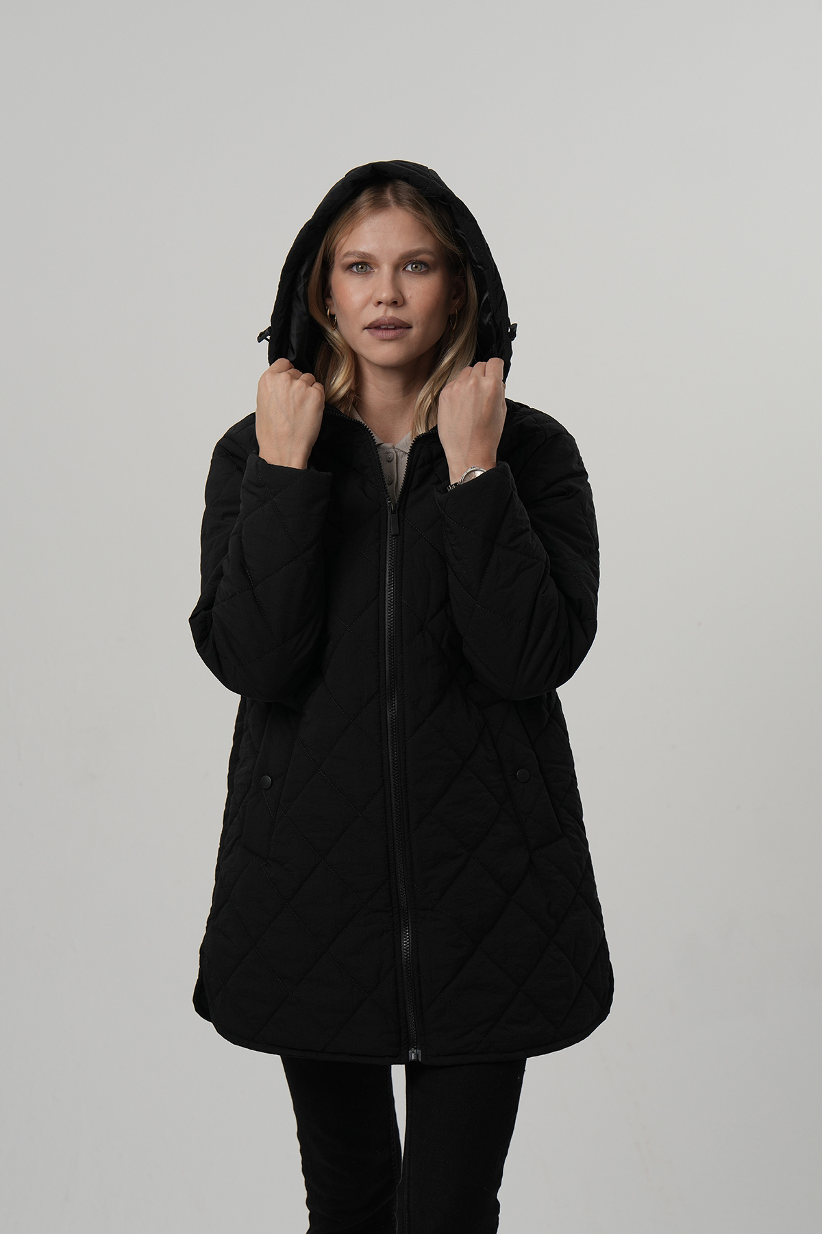 Kadin Siyah Mont Baklava Desen Kapitone Uzun Kadın Mont Kadin Siyah Mont Baklava Desen Kapitone Uzun Kadın Mont MEI26 2XL